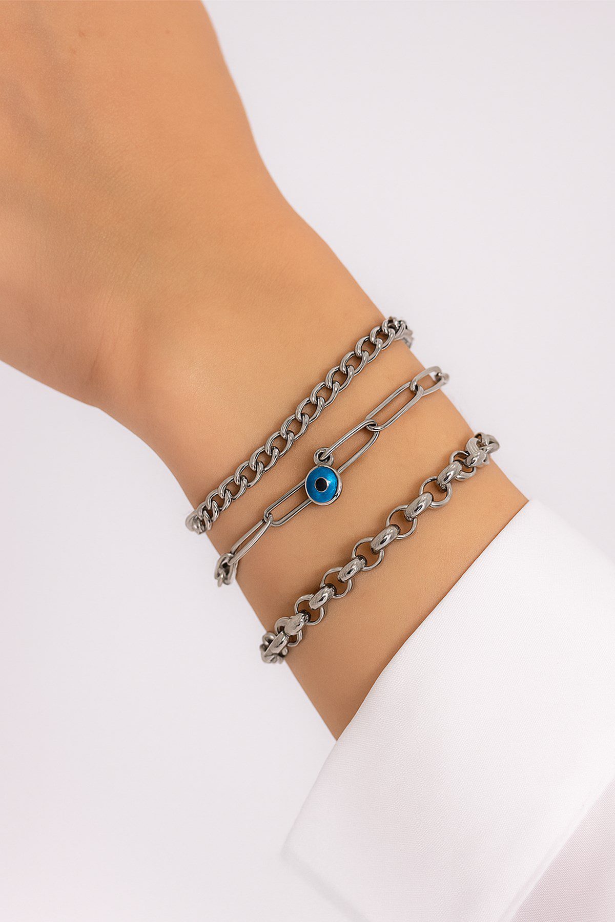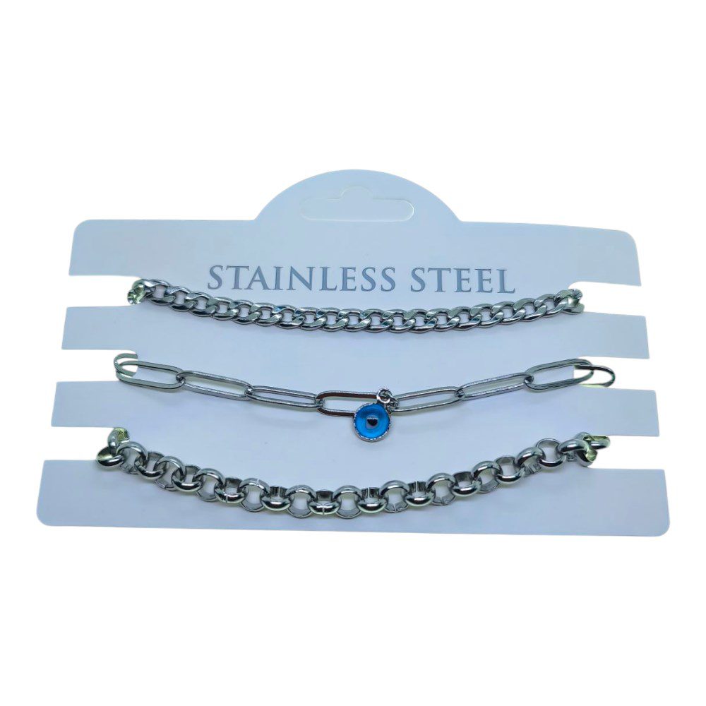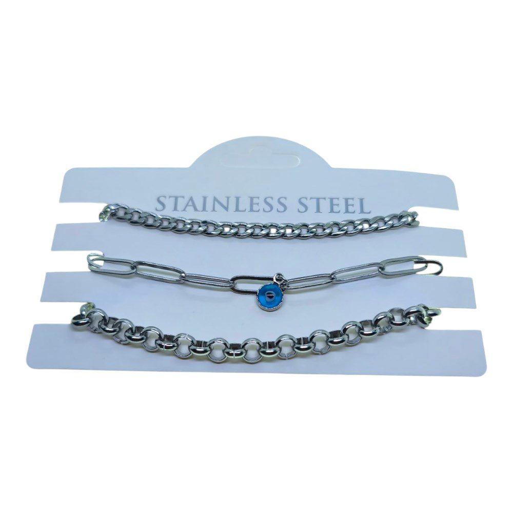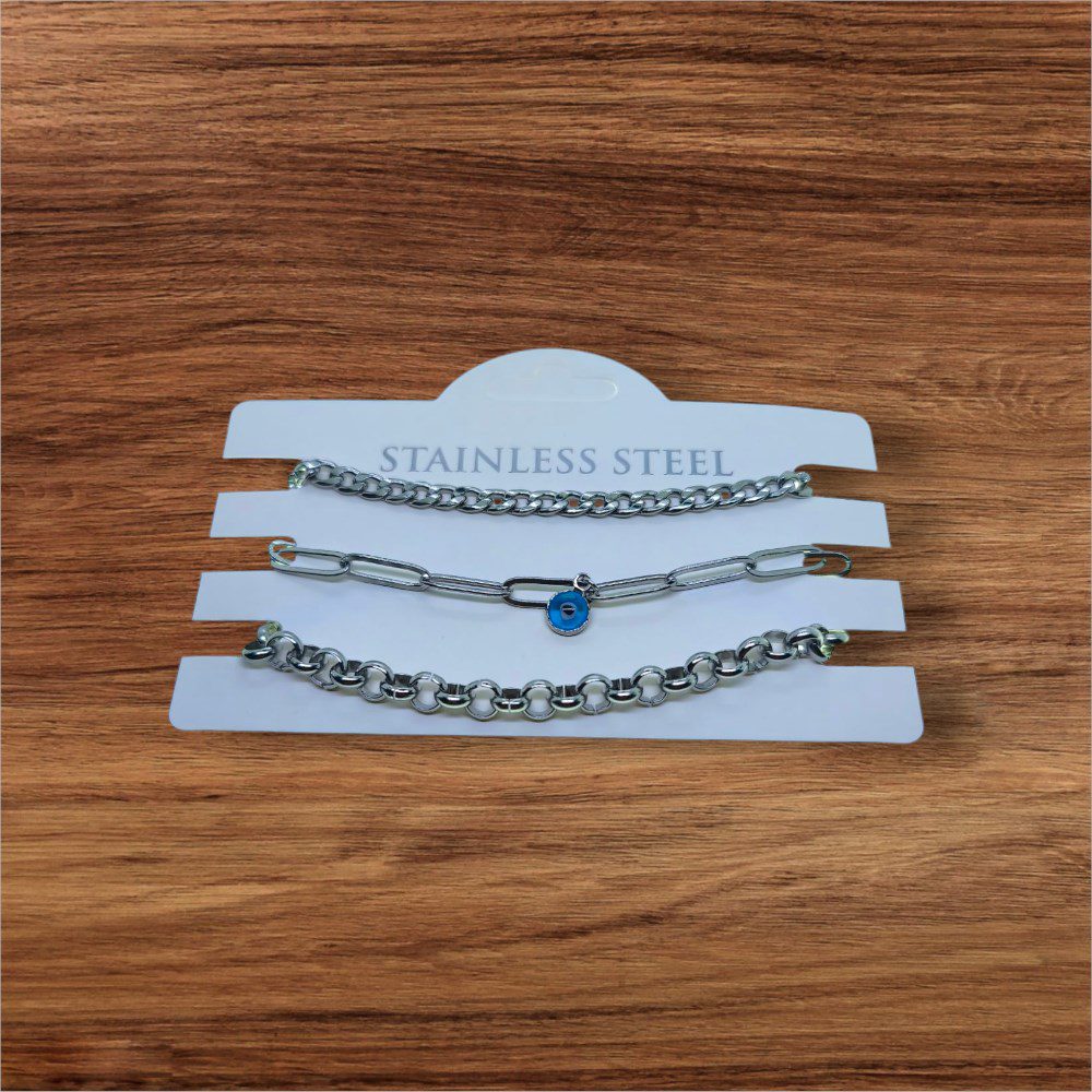 Toptan Gümüş Renk Cadena Ataç Göz Doc Zincir Kombin Çelik Bileklik – 3320