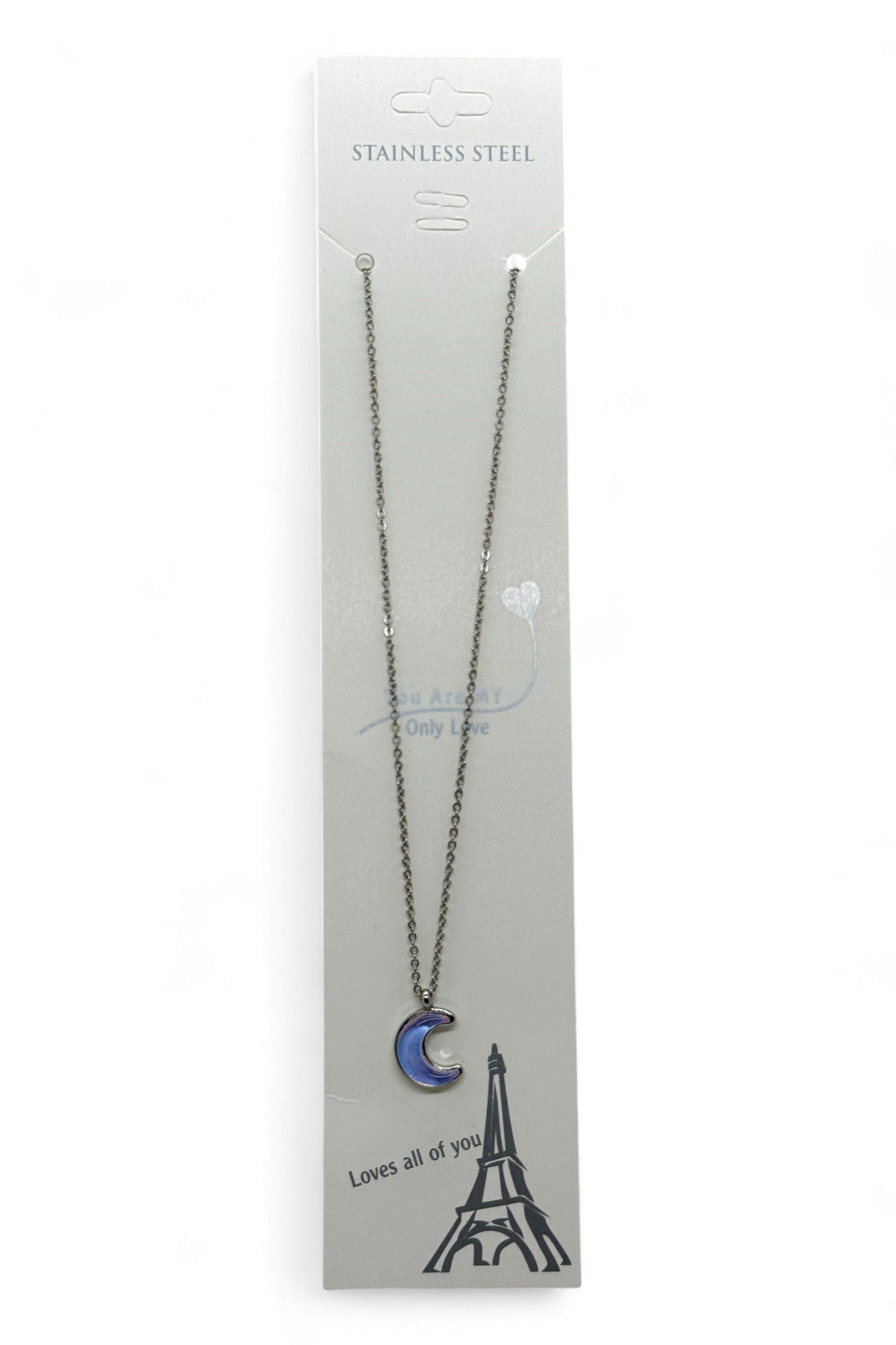 Toptan Gümüş Renk Cancan Ay Hilal Model Sf Zincir Çelik Kolye – 3801
