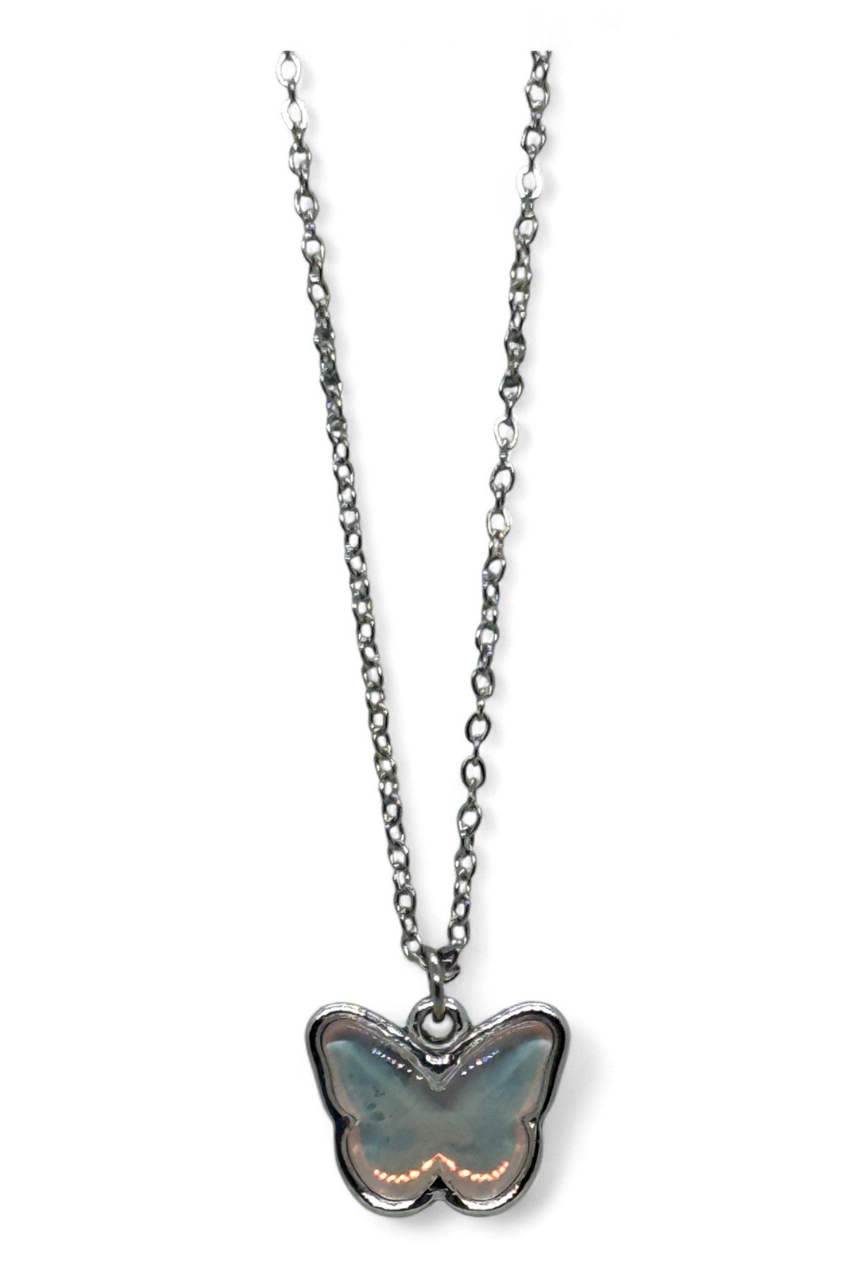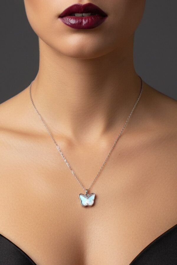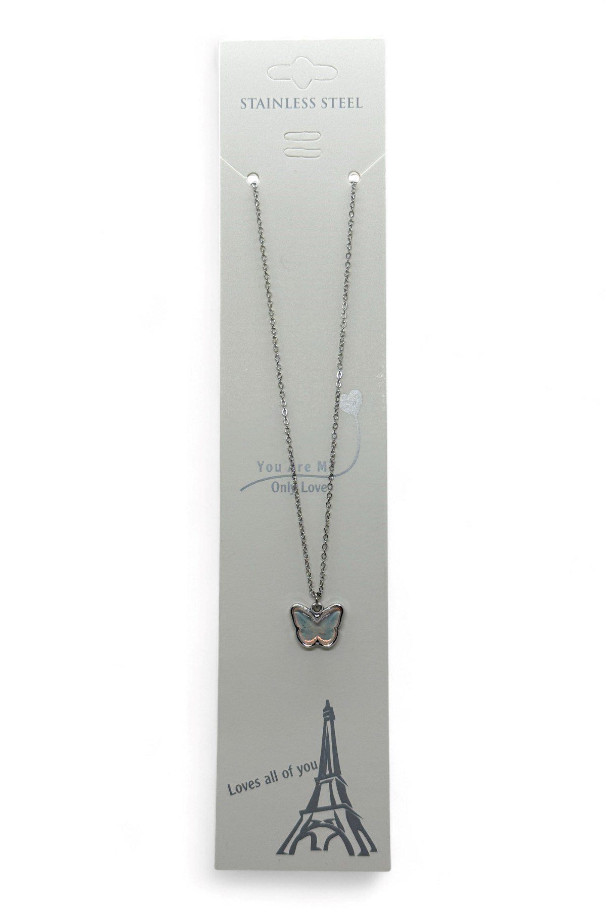 Toptan Gümüş Renk Cancan Beyaz Taş Kelebek Model Sf Zincir Çelik Kolye – 3774