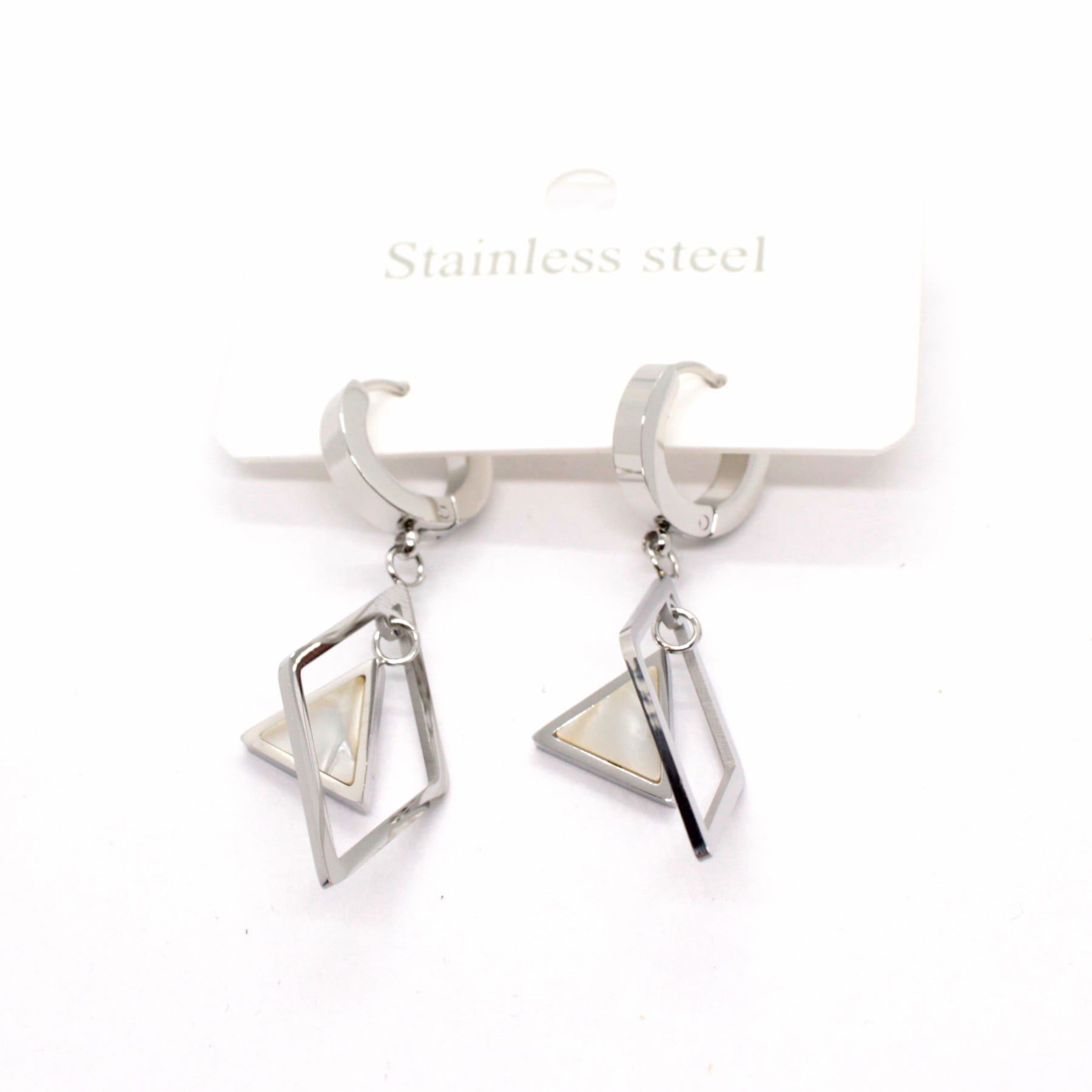 Toptan Gümüş Renk Çelik Sedef Üçgen İçten Sallantılı Küpe – 1481