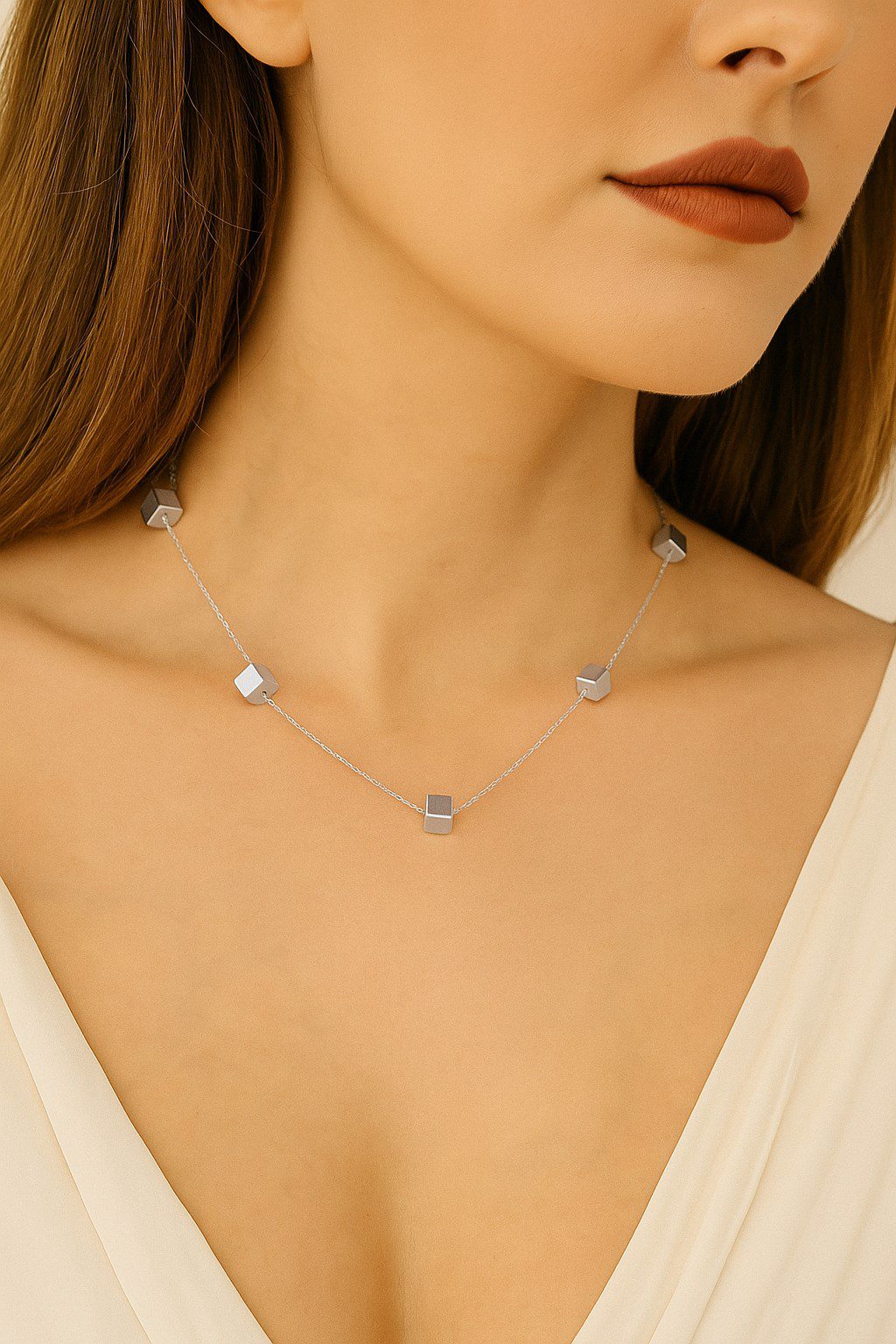 Toptan Gümüş Renk Çelik Sf Küp Çelik Kolye – 3376