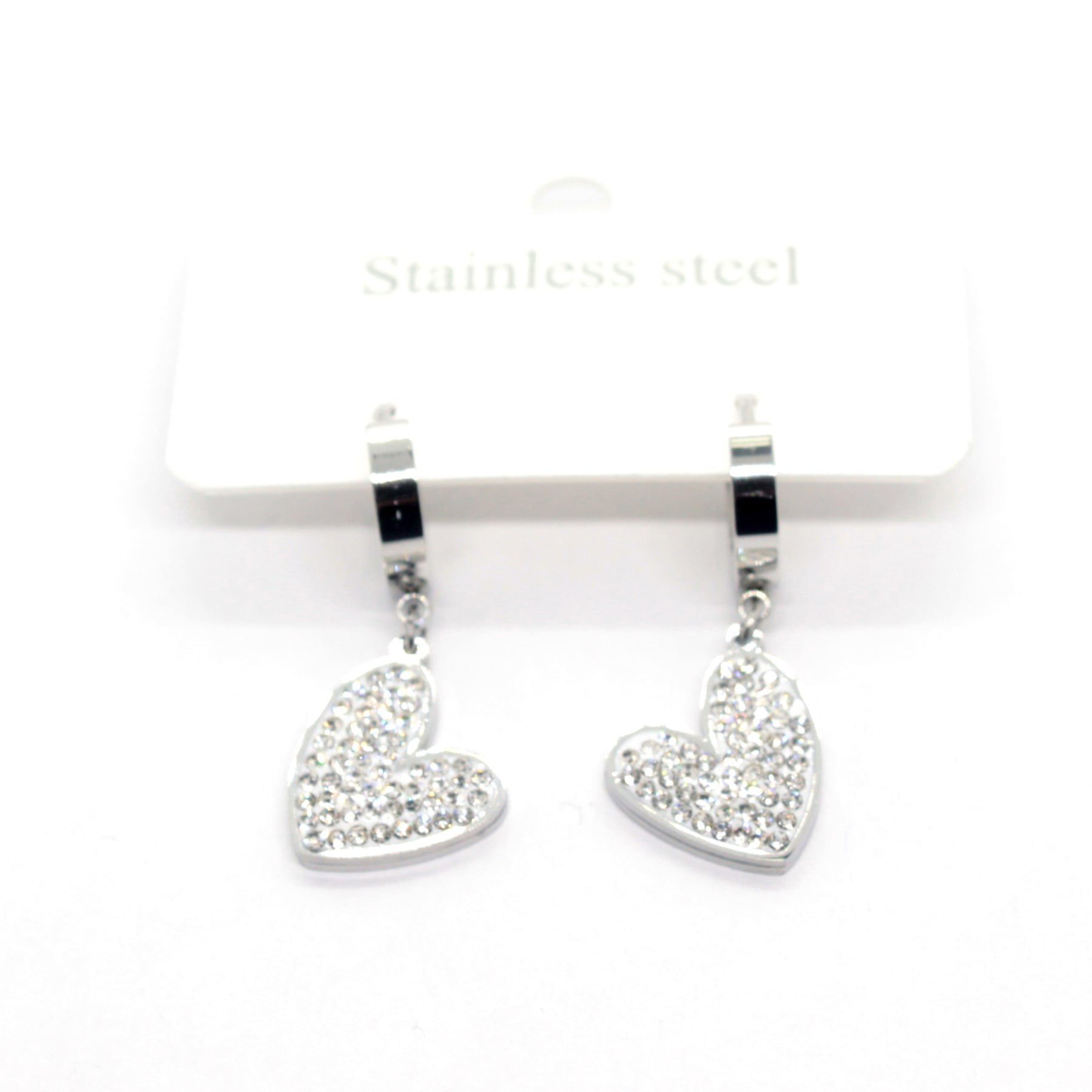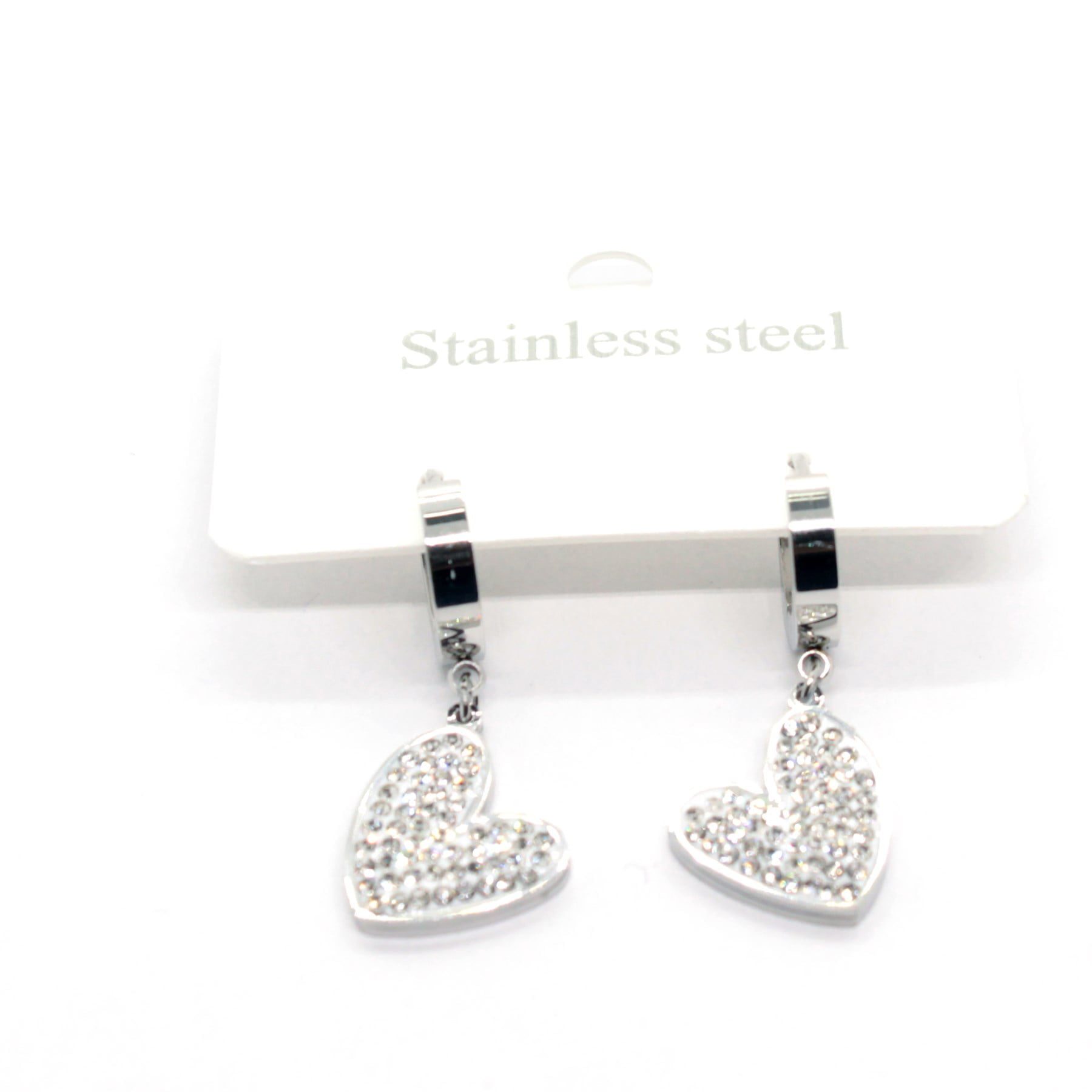 Toptan Gümüş Renk Çelik Taşlı Kalp Küpe – 1478