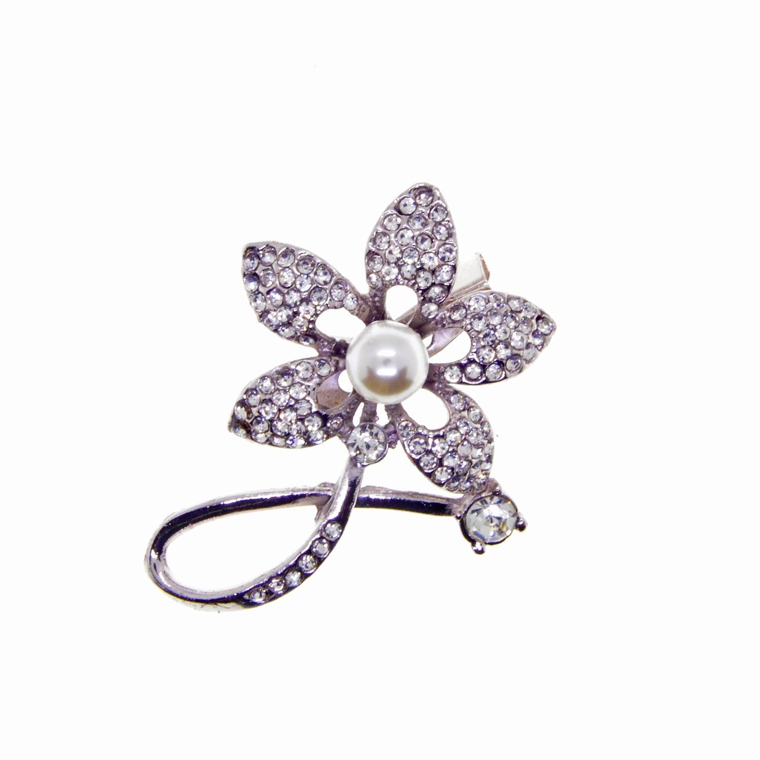 Toptan Gümüş Renk Çiçek Model İncili Broş – 2356