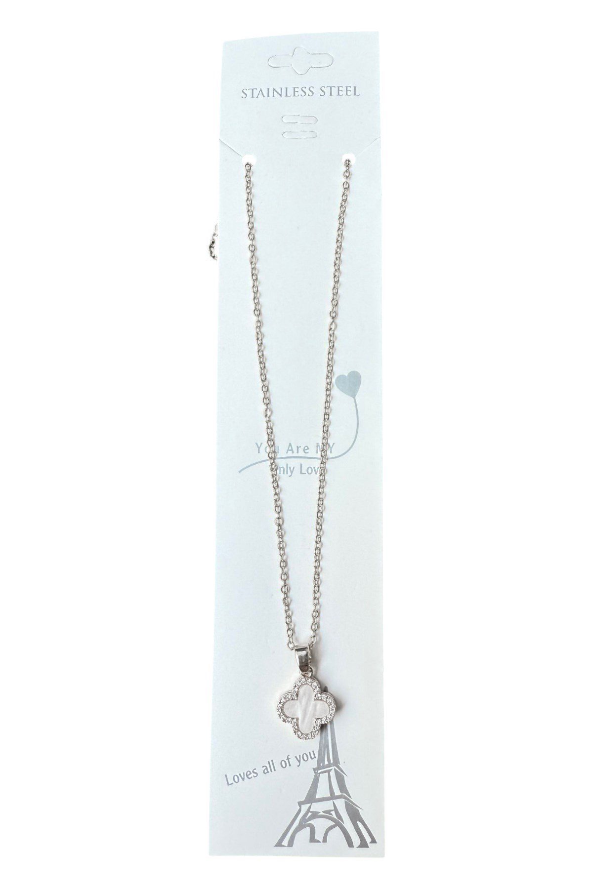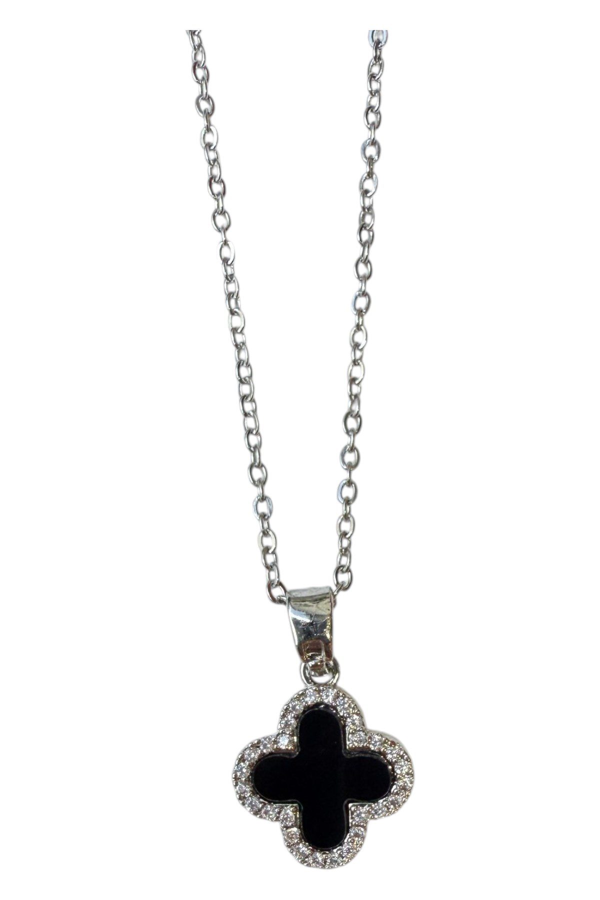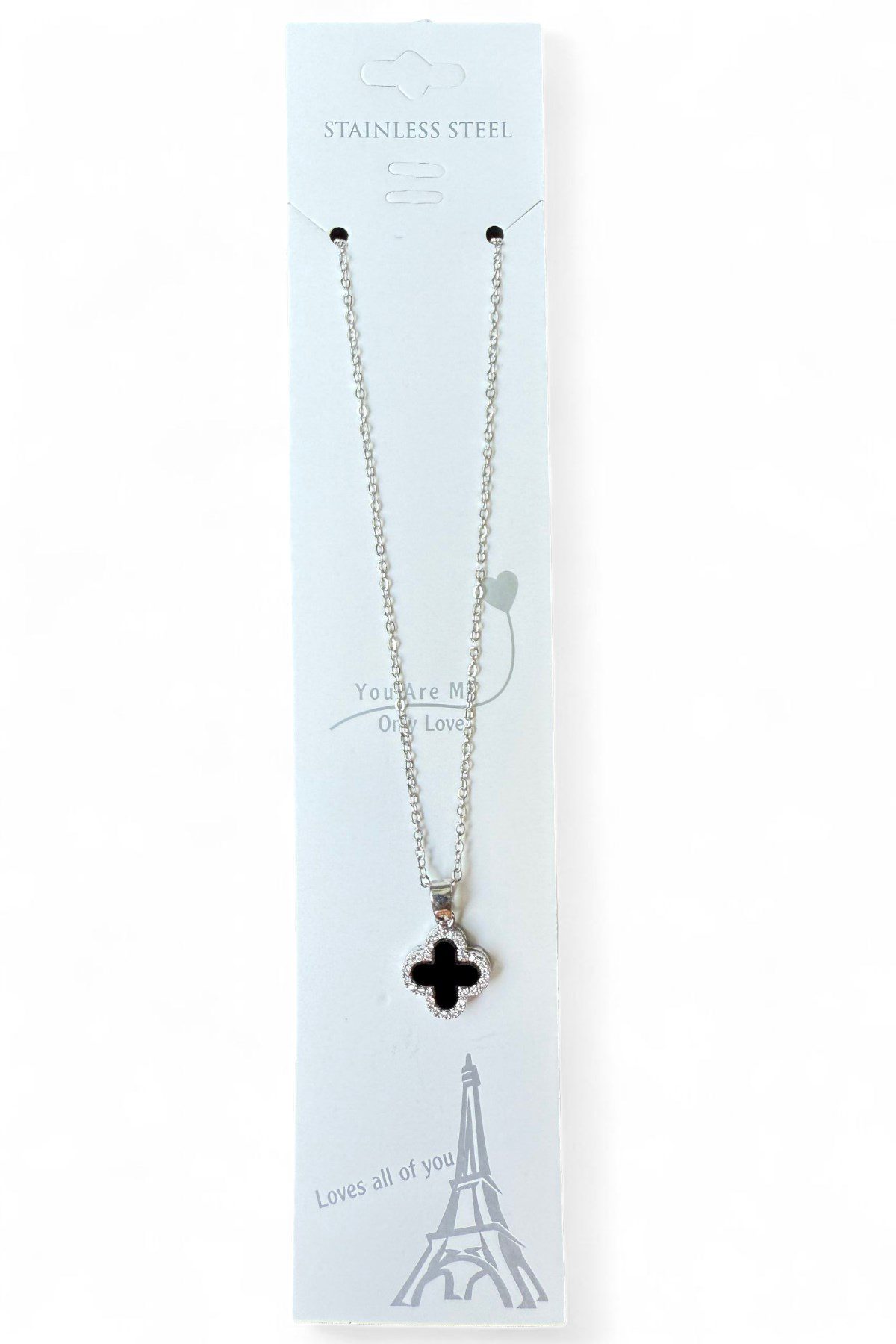 Toptan Gümüş Renk Çift Yönlü Van Cleef Kolye Önü Beyaz Arkası Siyah Sf Zincir Çelik Kolye – 3638