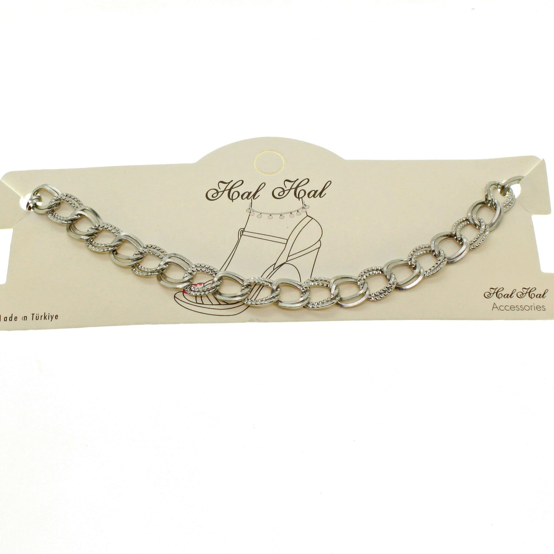 Toptan Gümüş Renk Çift Zincir Halhal – 1903
