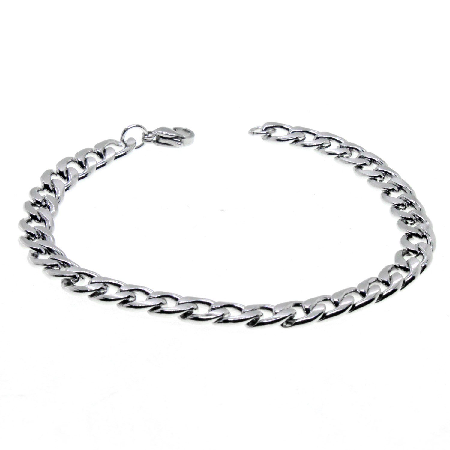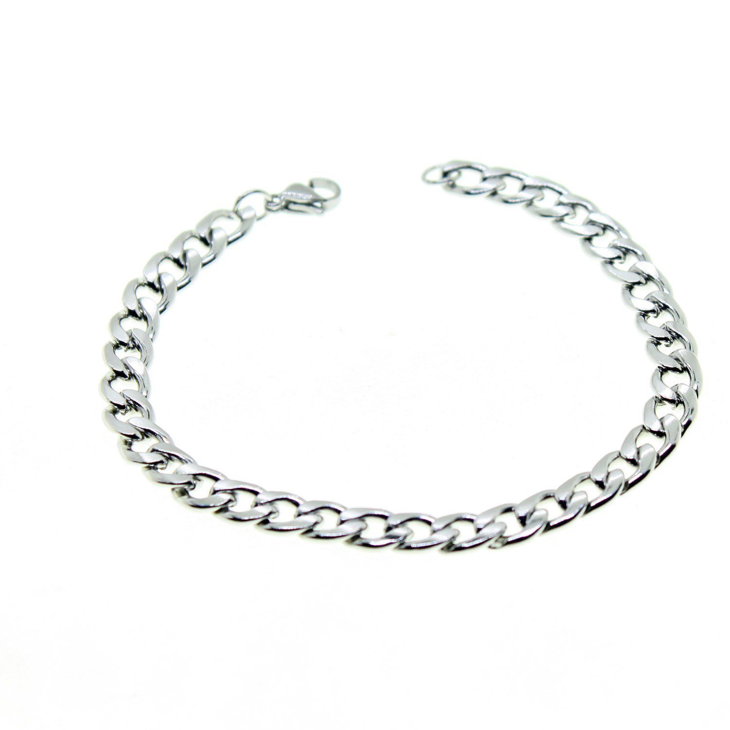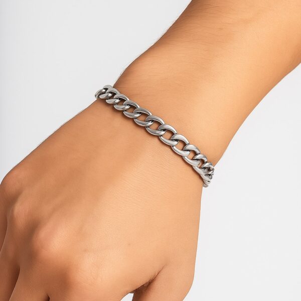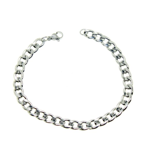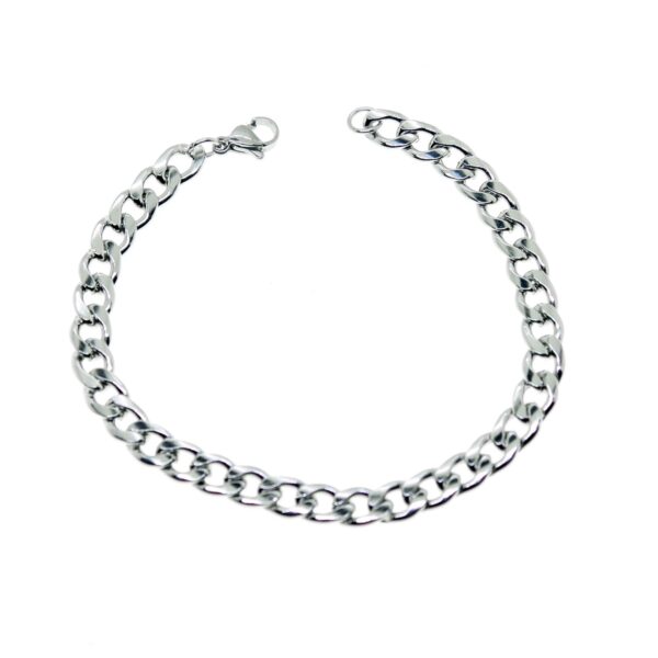 Toptan Gümüş Renk Cuban Unisex Erkek Metal Beyaz Çelik Zincir Çelik Bileklik- 2800