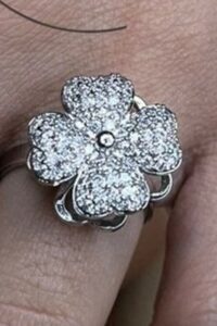 Toptan Gümüş Renk Dört Yaprak Yonca Model Zirkon Taşlı Çelik Ayarlanabilir Ucu Dönen Çelik Yüzük -3095