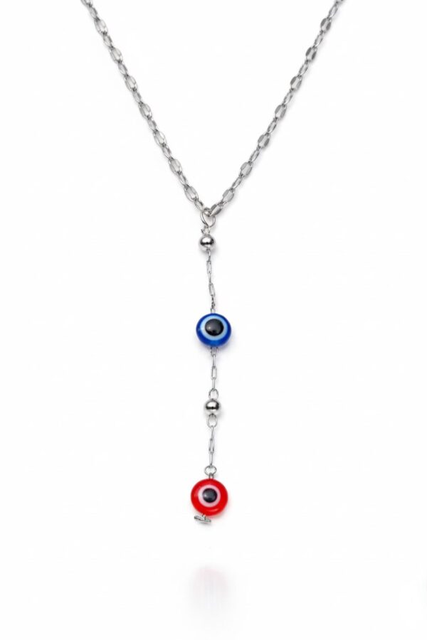 Toptan Gümüş Renk Dudak Zincir Nazar Göz Ye Model Yeni Sezon Çelik Kolye – 3834