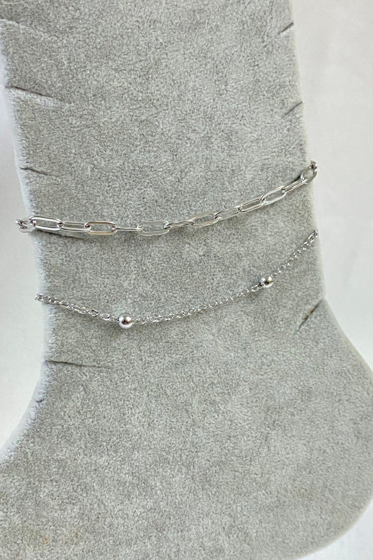 Toptan Gümüş Renk Ezme Ve Top Zincir Çelik Halhal – 3262