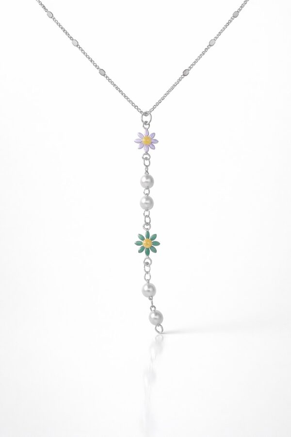 Toptan Gümüş Renk Ezme Zincir Çiçek İnci Ye Model Çelik Kolye – 3838