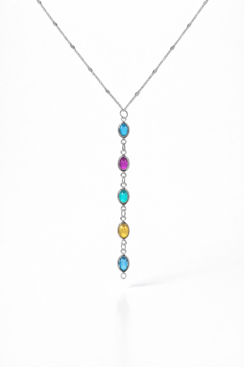 Toptan Gümüş Renk Ezme Zincir Sıralı Oval Ye Model Çelik Kolye – 3840