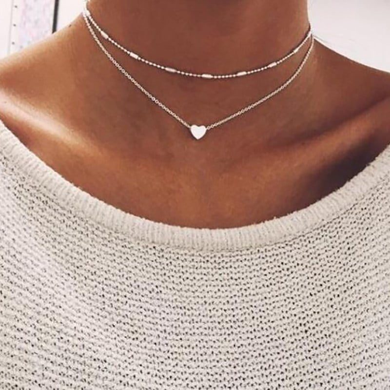 Toptan Gümüş Renk Gerdanlık Kolye Kadınlar İçin Top Zincir Kalp Kolye