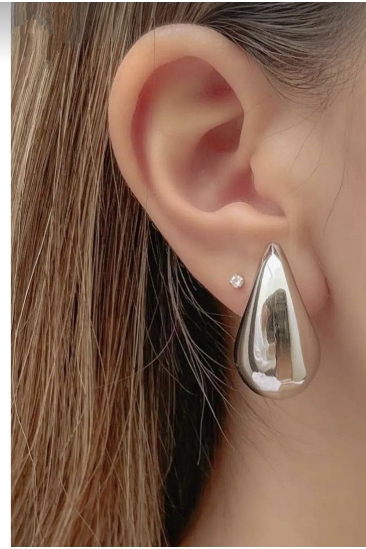 Toptan Gümüş Renk Göz Yaşı Bottega Küpe Kadın Damla Küpe Vip Kararmaz Solmaz Çelik Küpe – 3014
