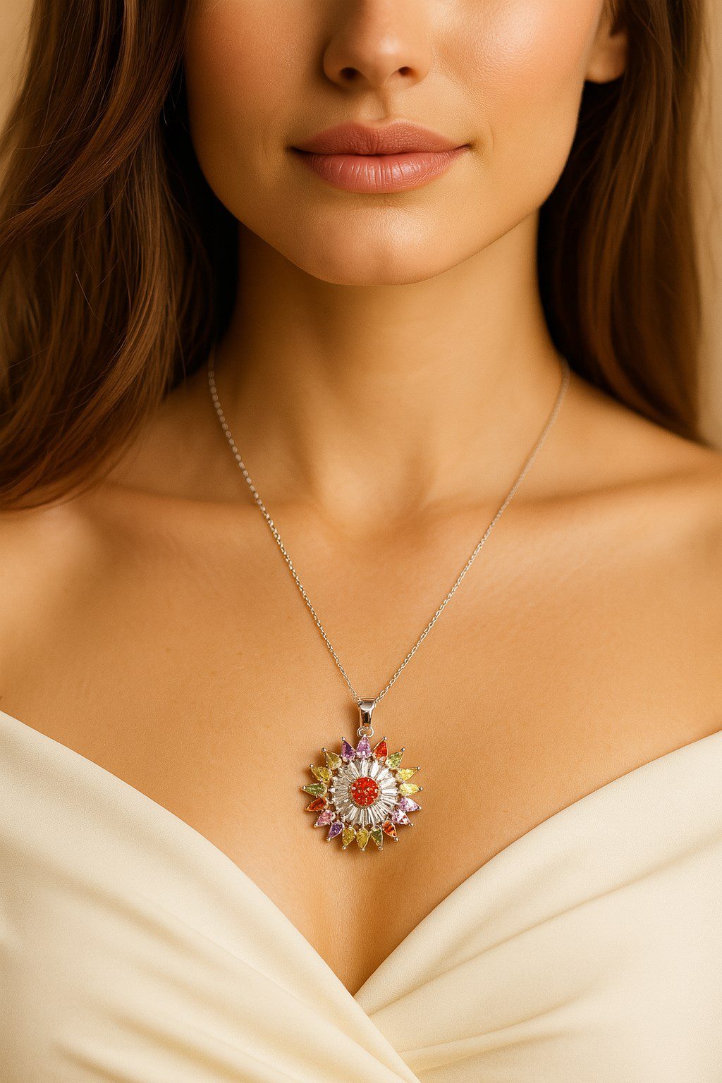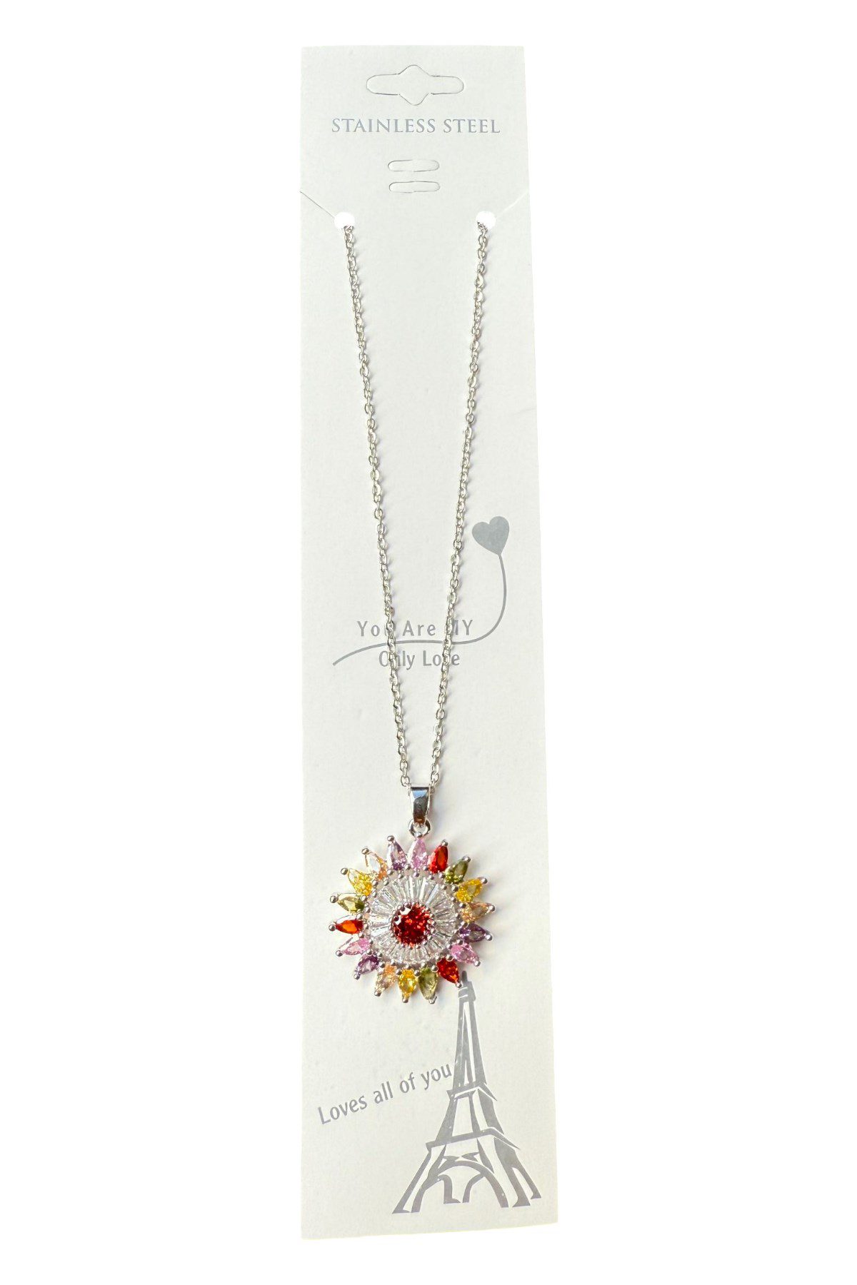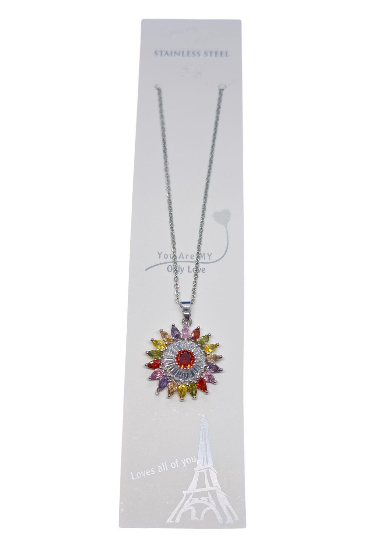 Toptan Gümüş Renk Güneş Mix Sf Zincir Çelik Kolye – 3637
