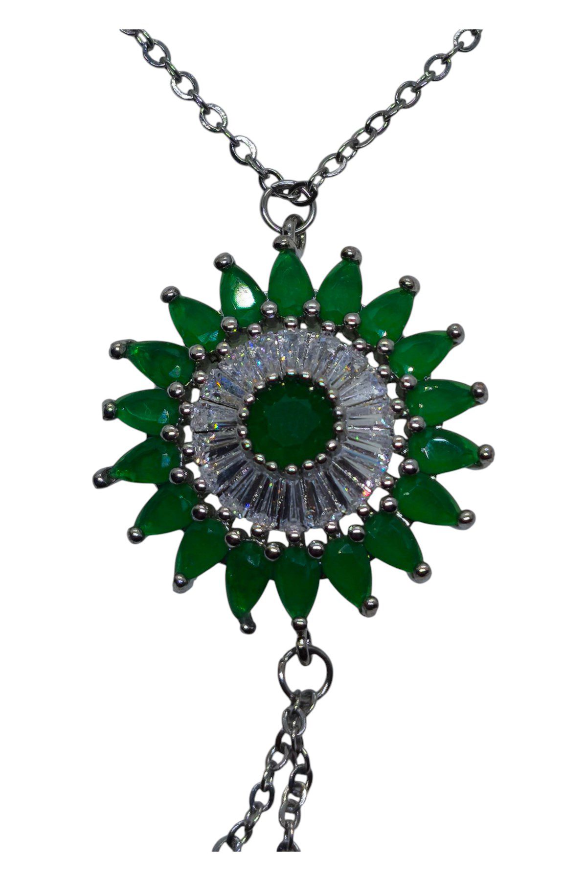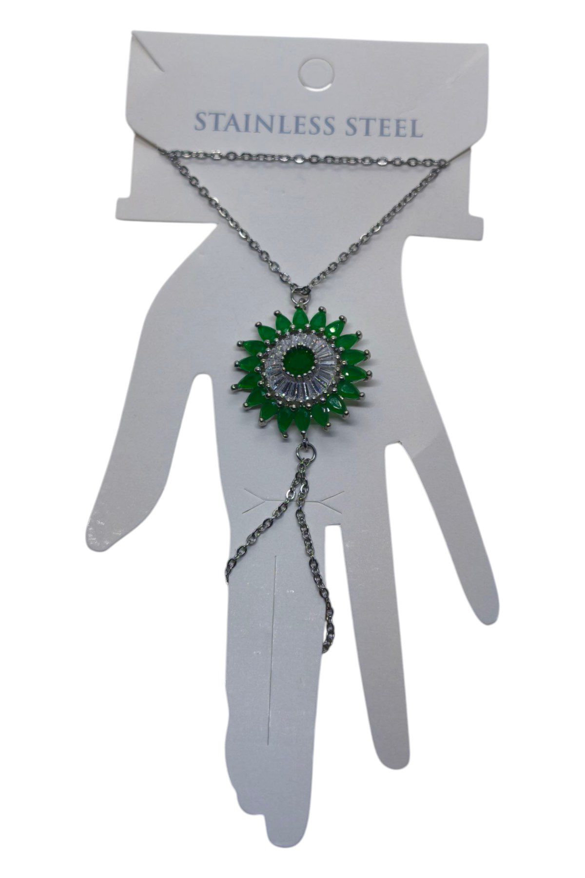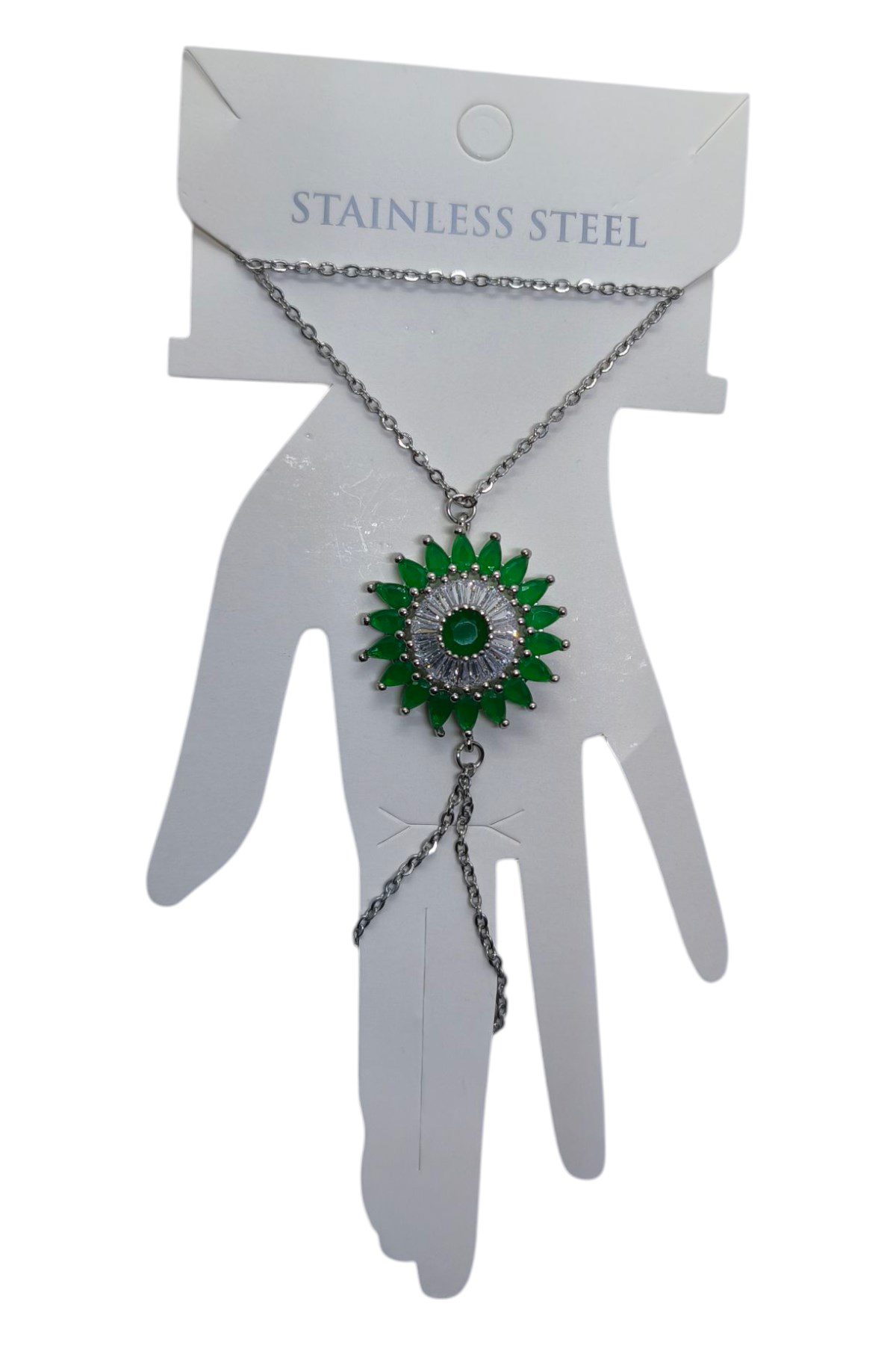 Toptan Gümüş Renk Güneş Yeşil Taş Çelik Şahmeran – 3521