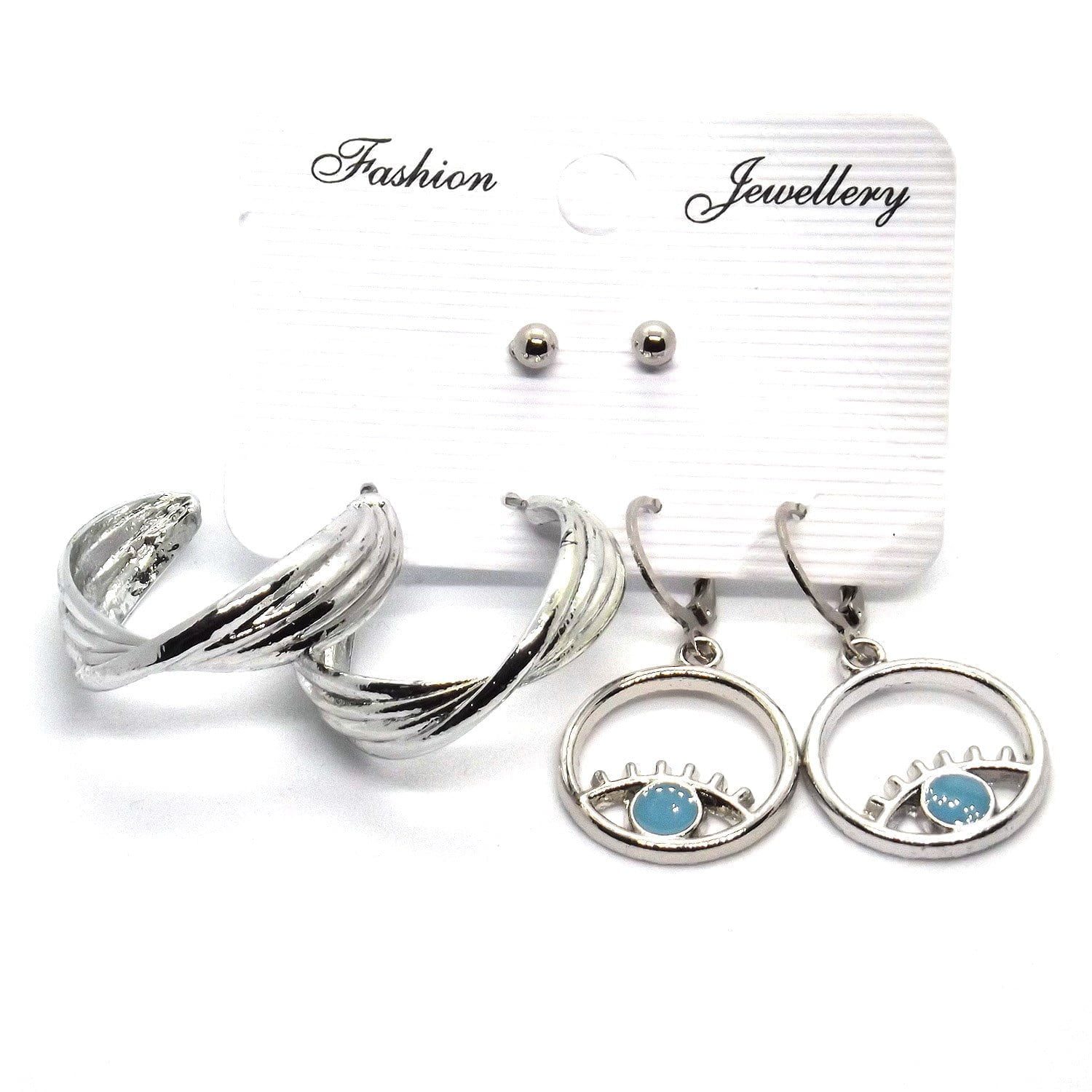 Toptan Gümüş Renk Halka Halat Desenli Kombin Küpe 735