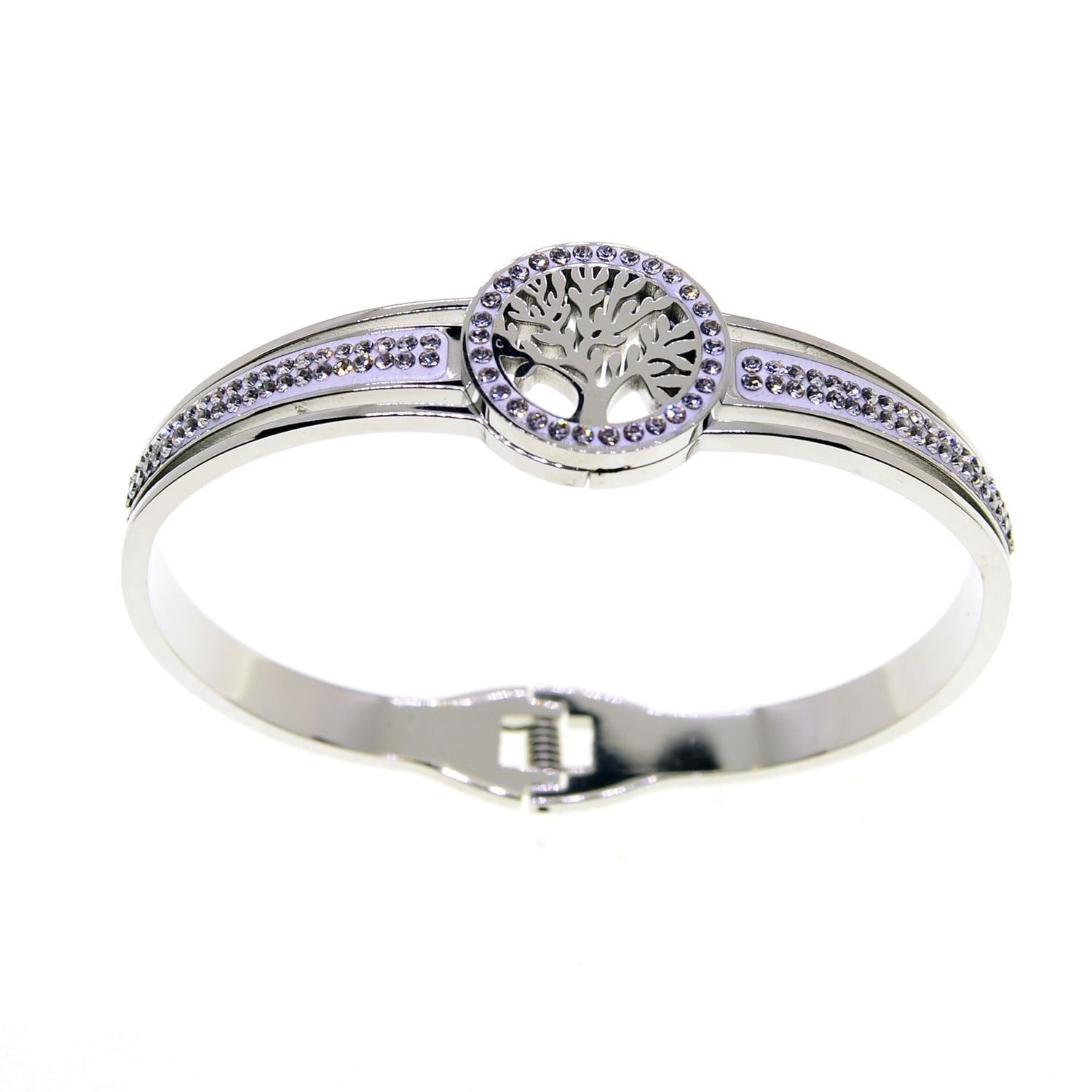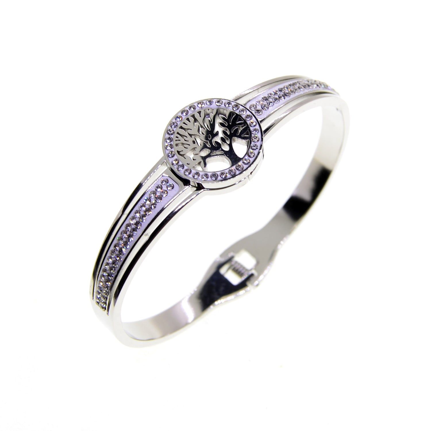 Toptan Gümüş Renk Hayat Ağaçı Model Çelik Kelepçe Bileklik – 2641