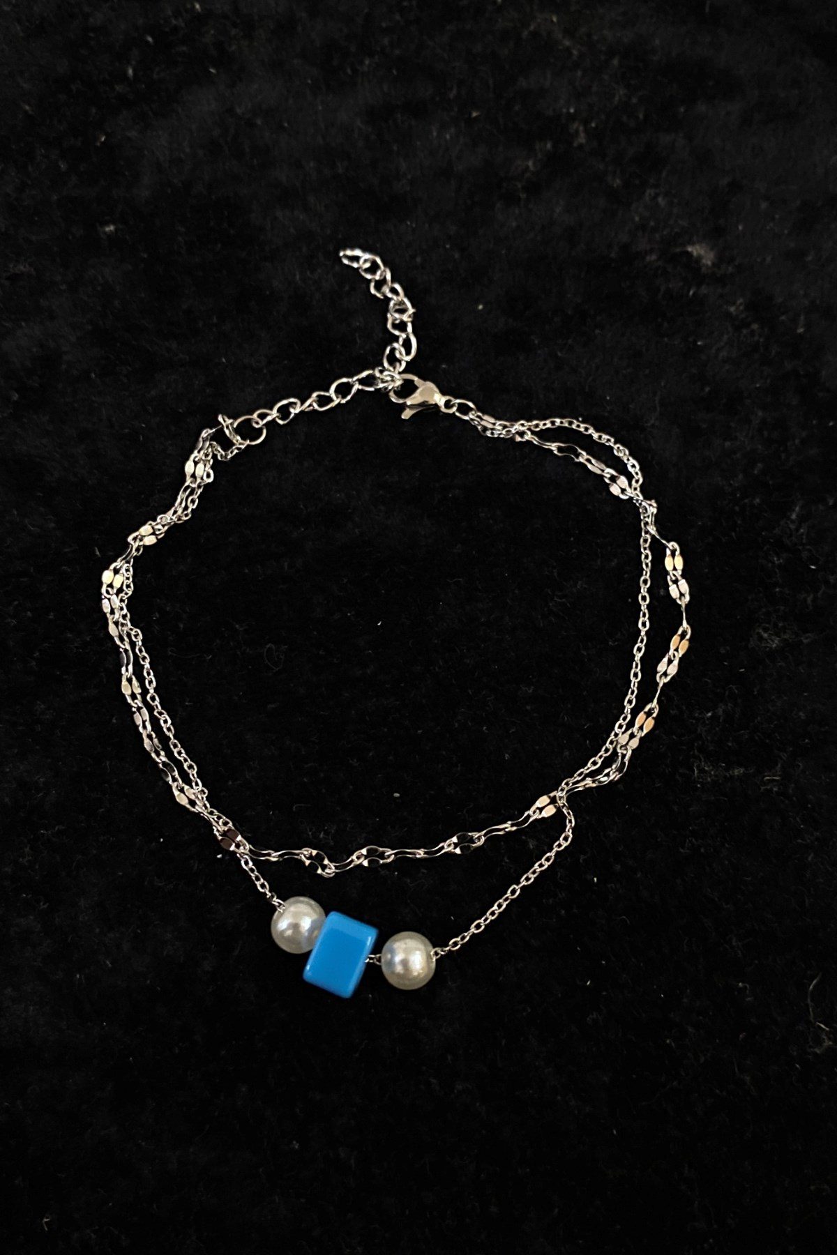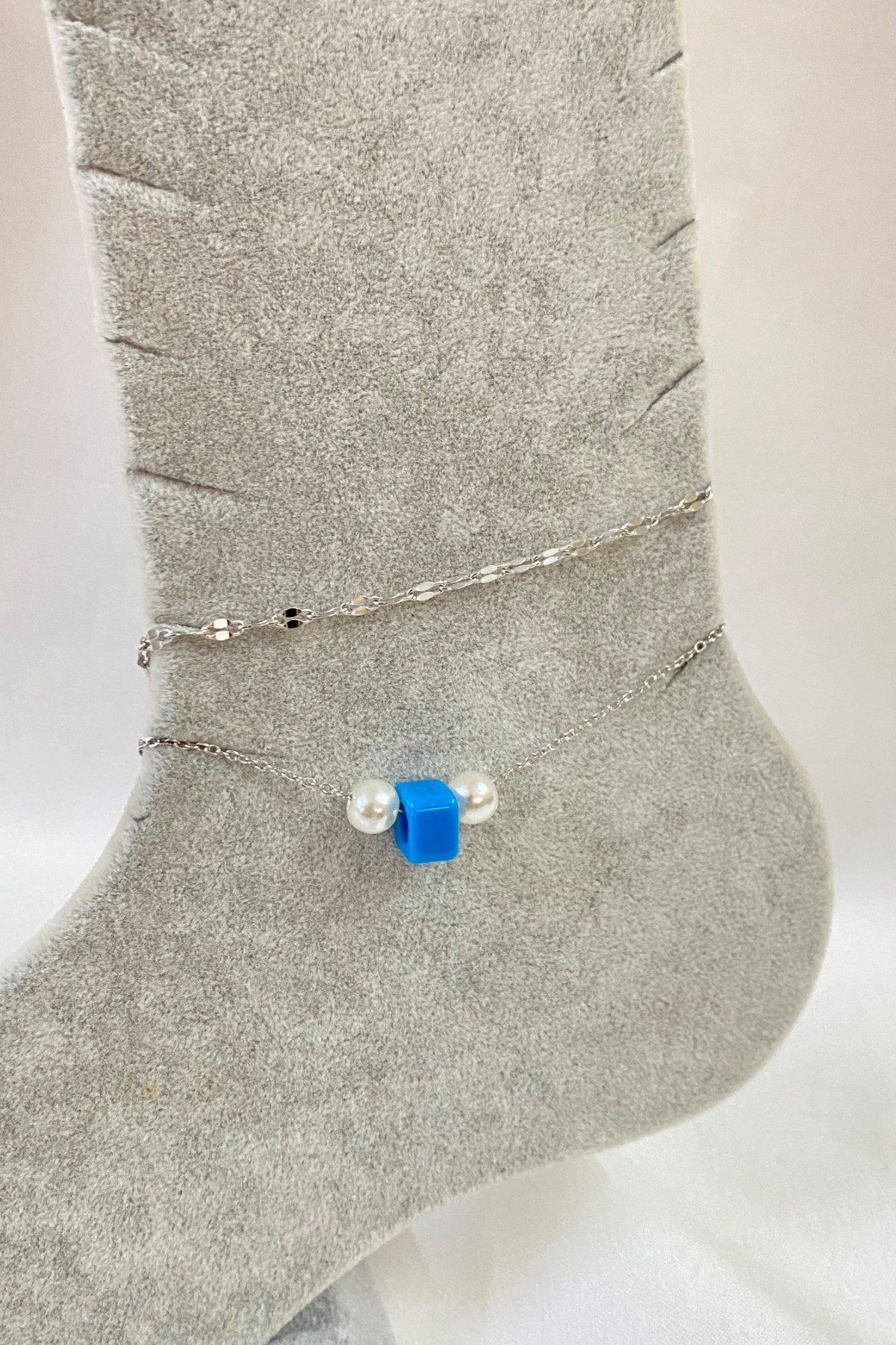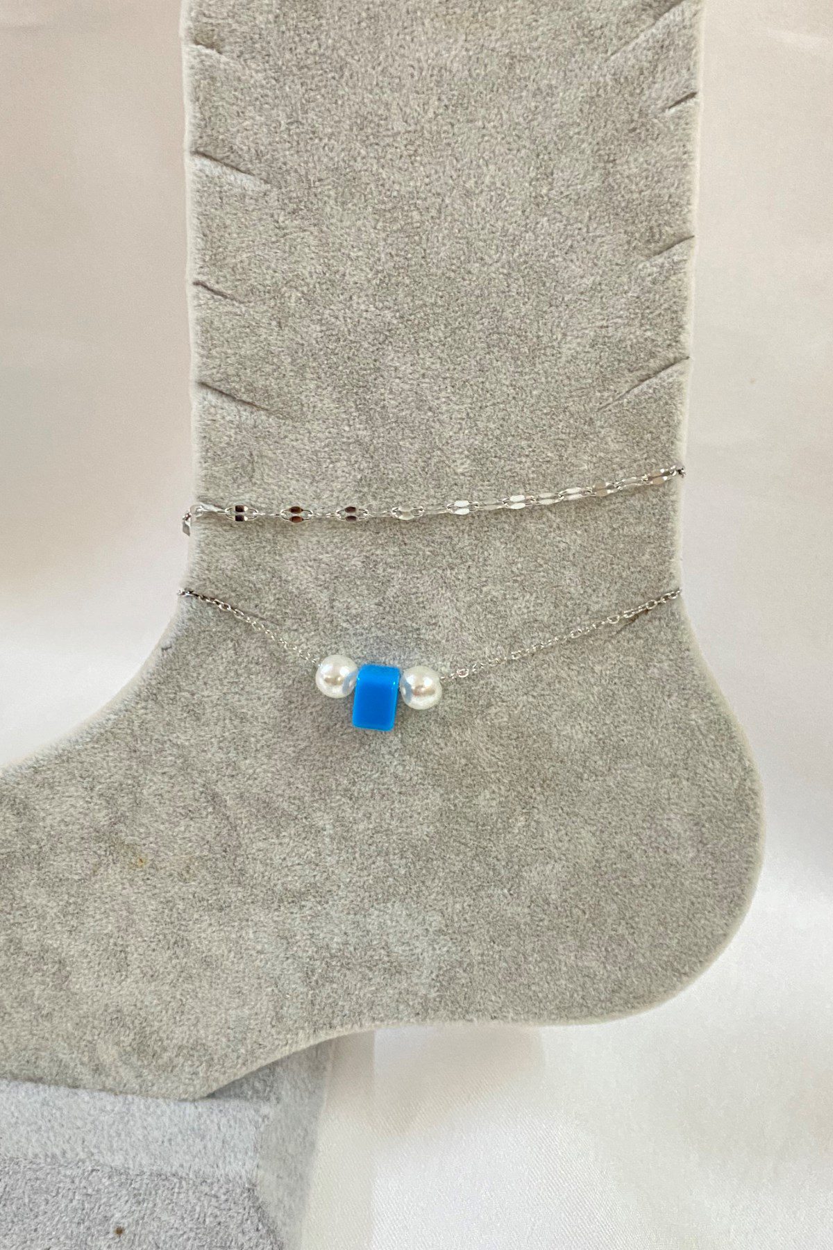 Toptan Gümüş Renk İnci Bodrum Model Singapur Ve Sf Zincir Çelik Halhal – 3274