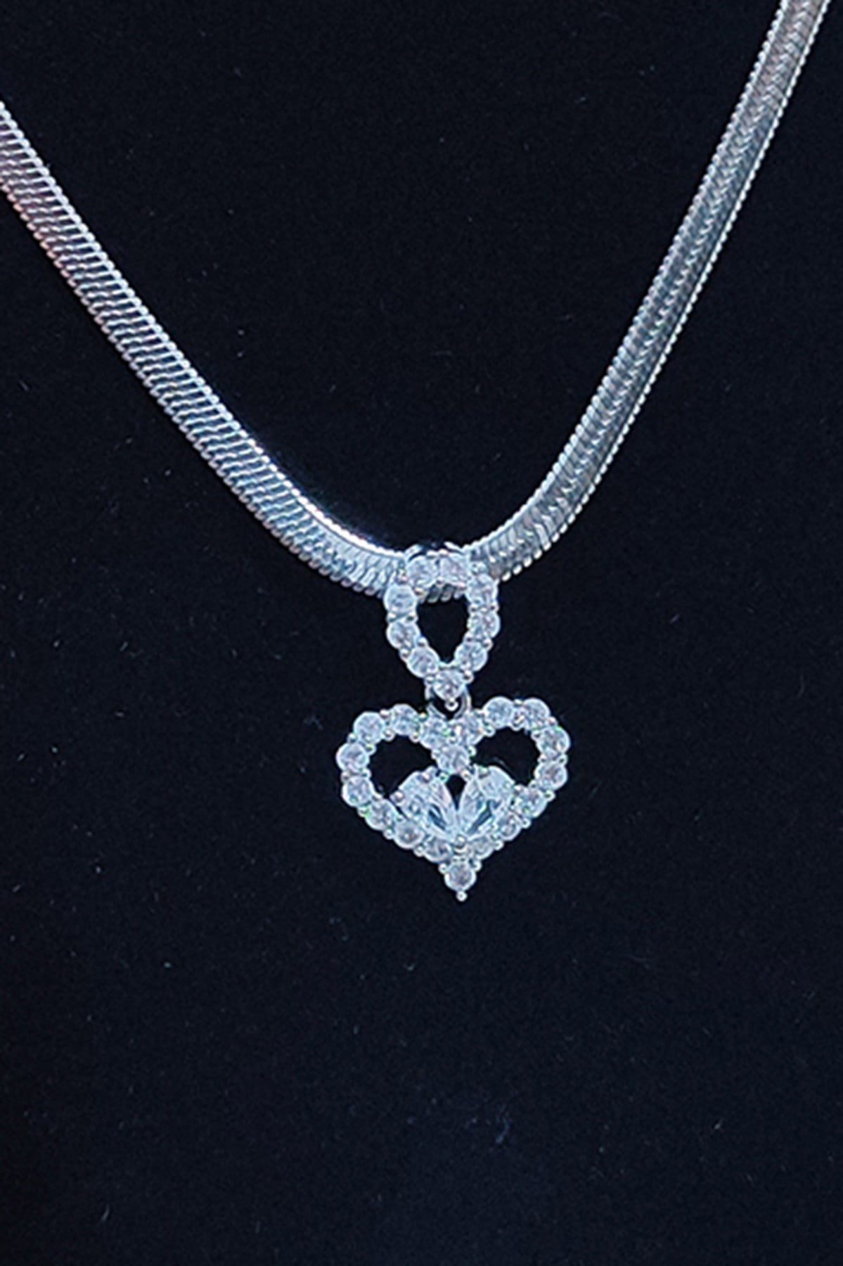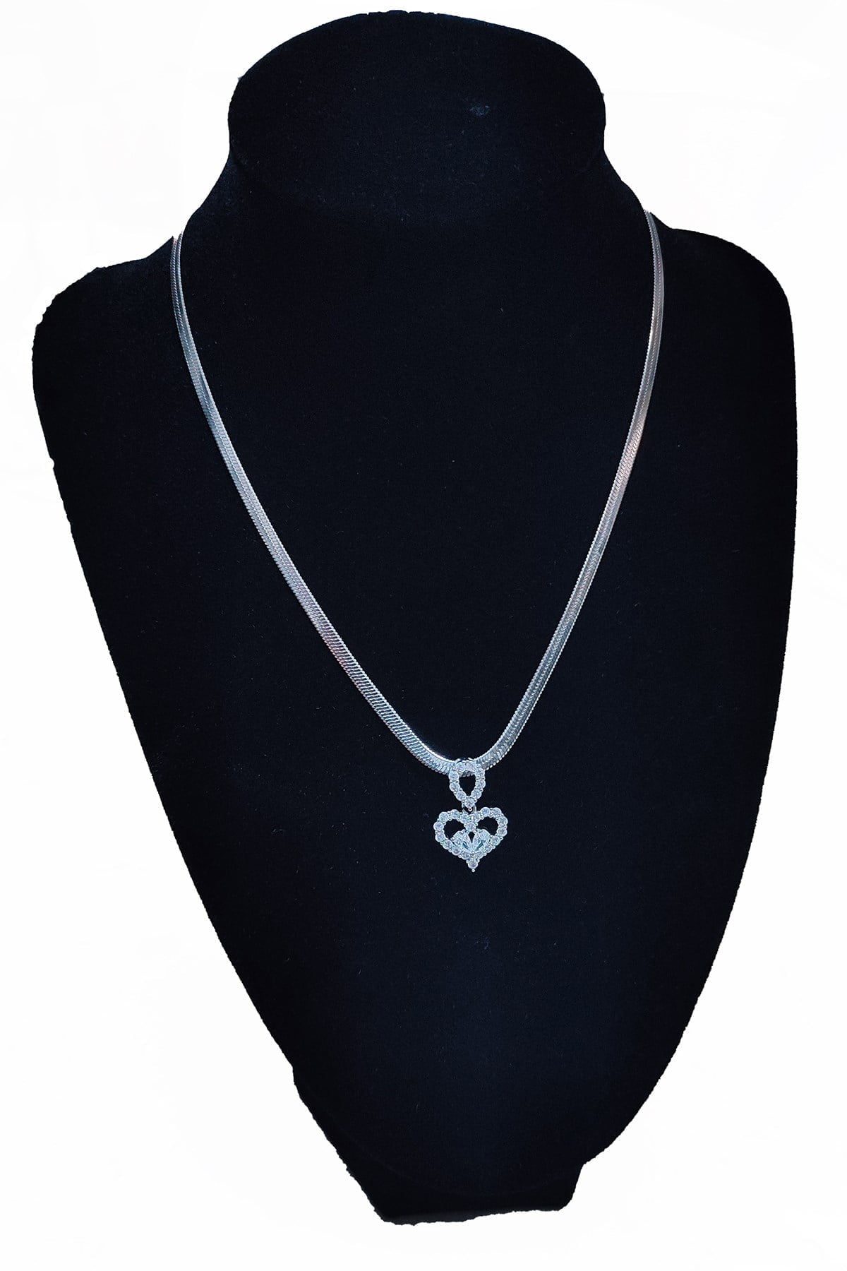 Toptan Gümüş Renk İtalyan Kalp Çelik Kolye – 2528