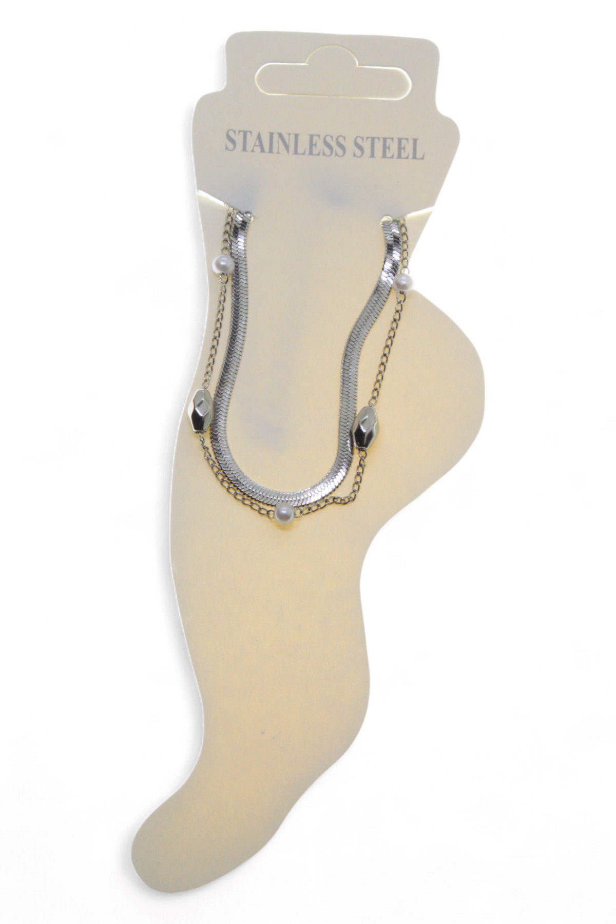 Toptan Gümüş Renk İtalyan Kesme Silindir İnci Çelik Halhal – 3460