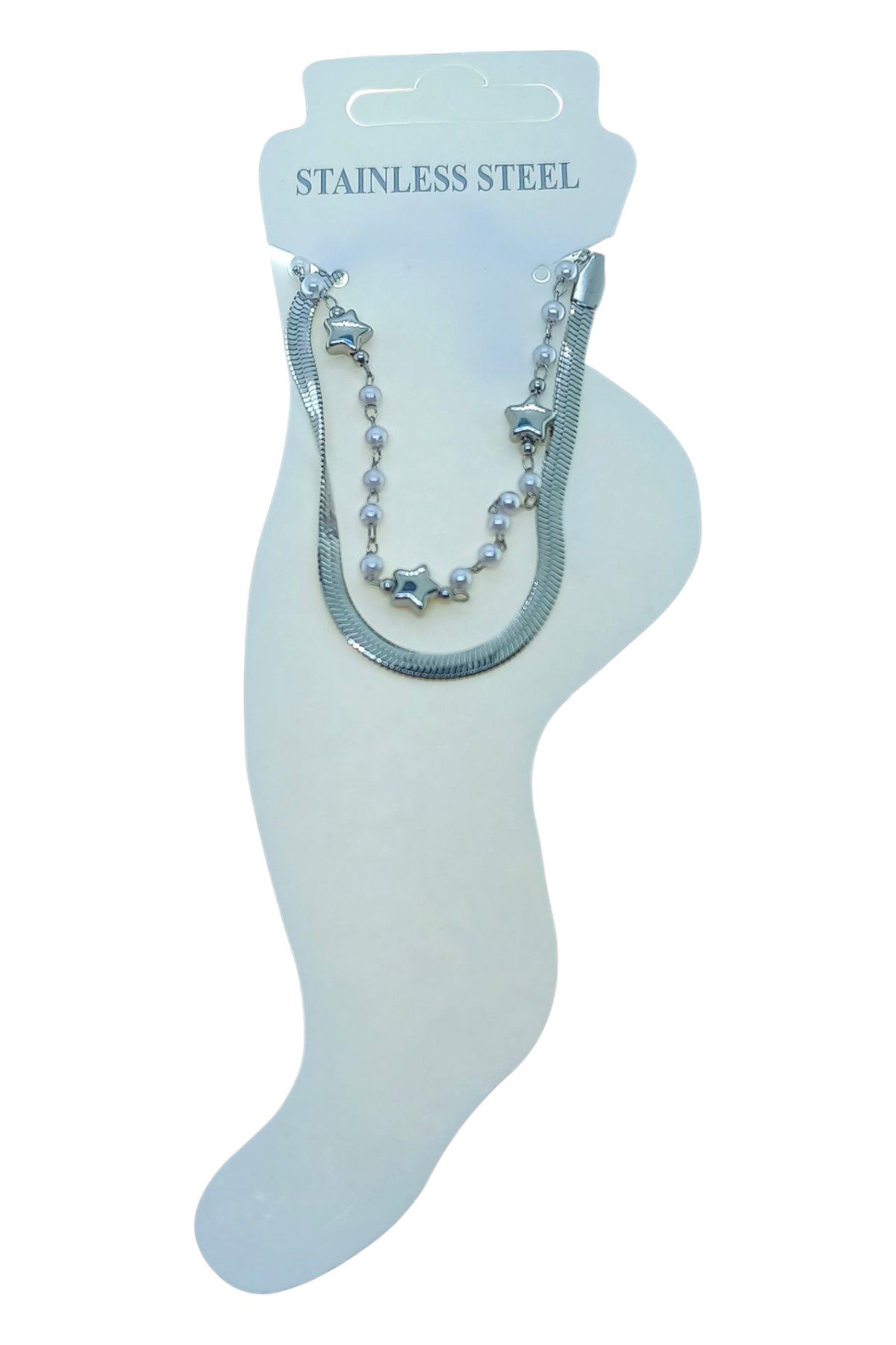 Toptan Gümüş Renk İtalyan Yıldız Sıra İnci Çelik Halhal – 3498