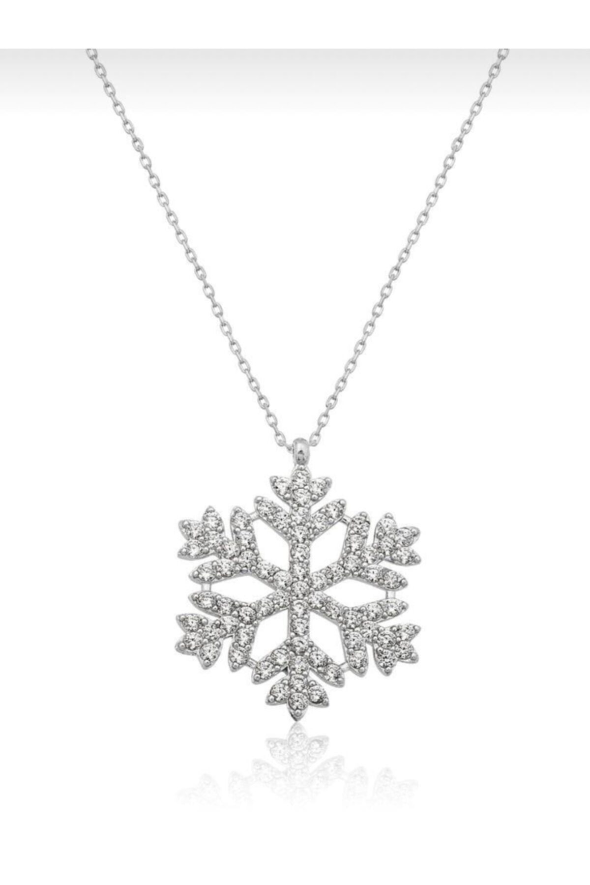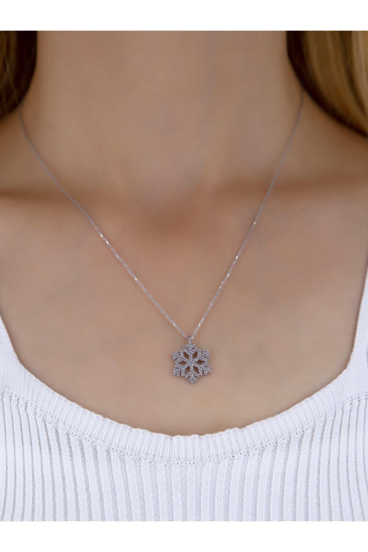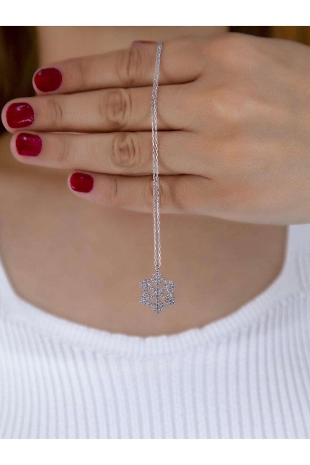 Toptan Gümüş Renk Kadın Kartanesi Kolye Zirkon Beyaz Taşlı Kar Tanesi Çelik Kolye – 813