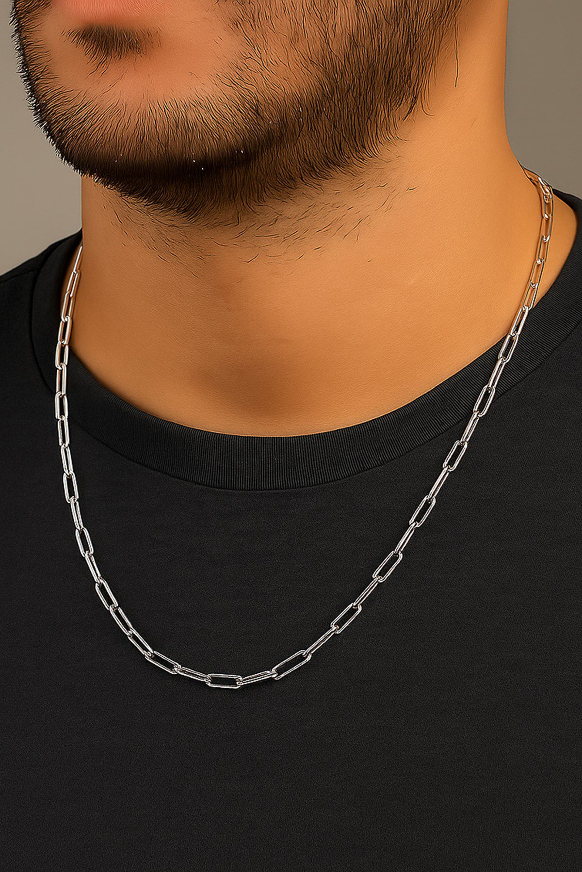 Toptan Gümüş Renk Kalın Ataç Unisex Çelik Kolye – 3362