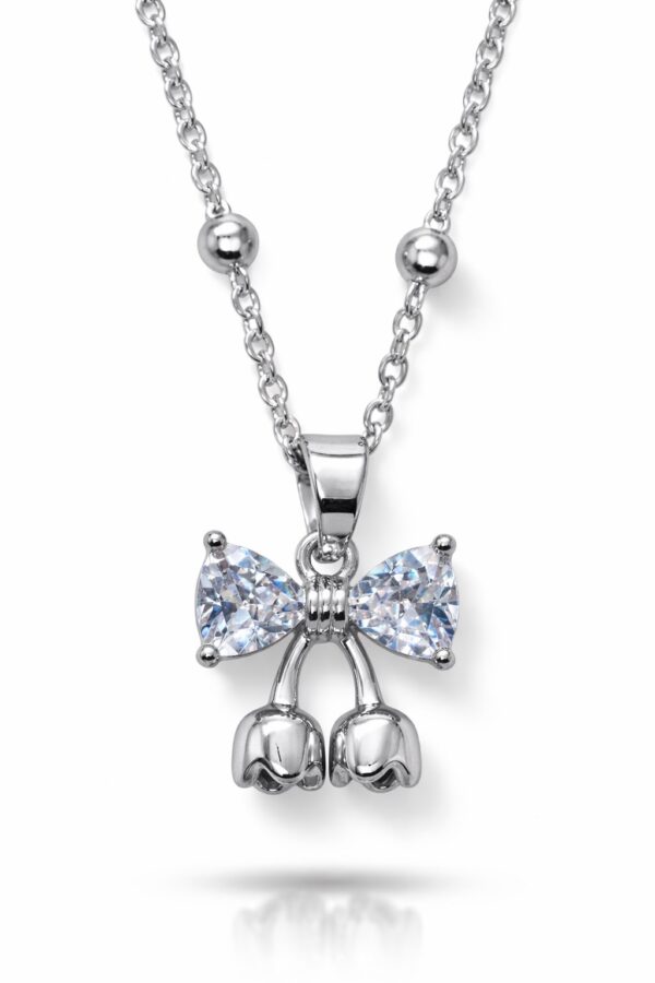 Toptan Gümüş Renk Kalp Fiyonk Model Top Zincir Çelik Kolye- 3854