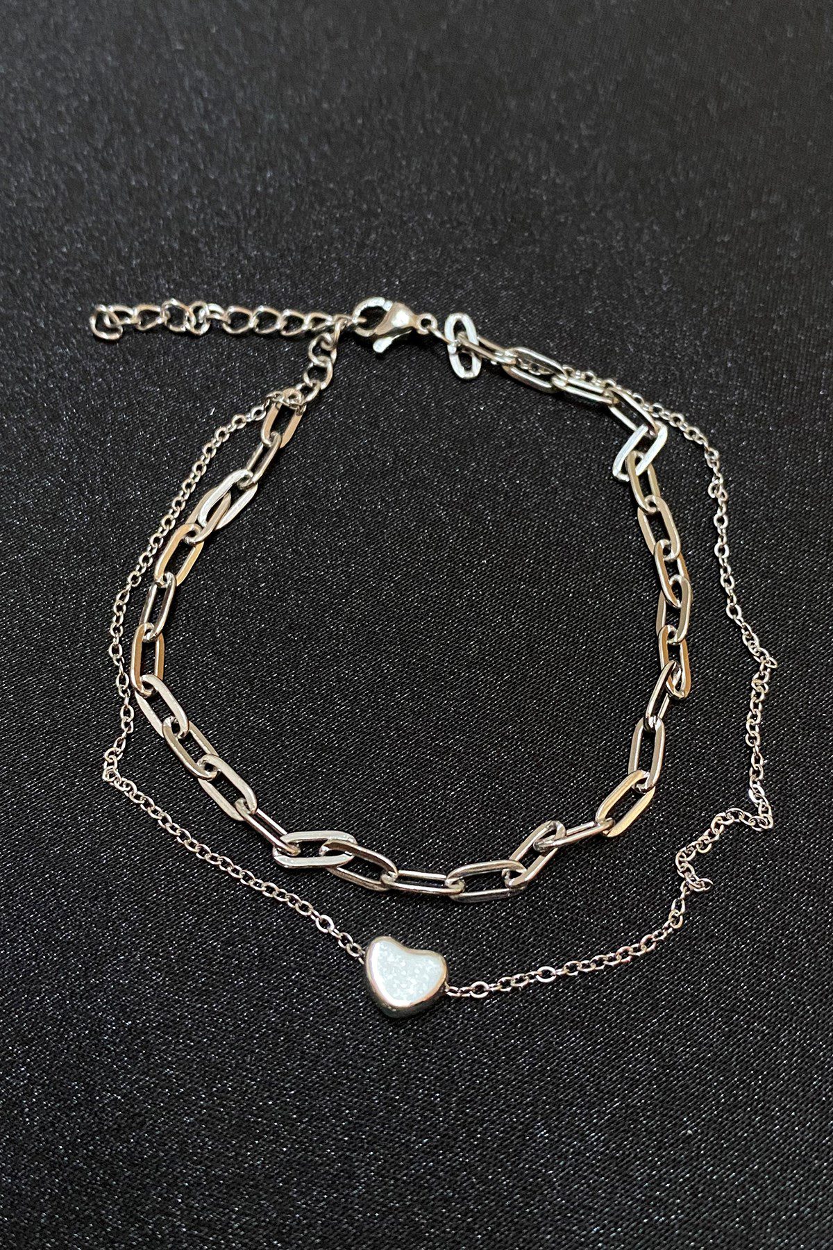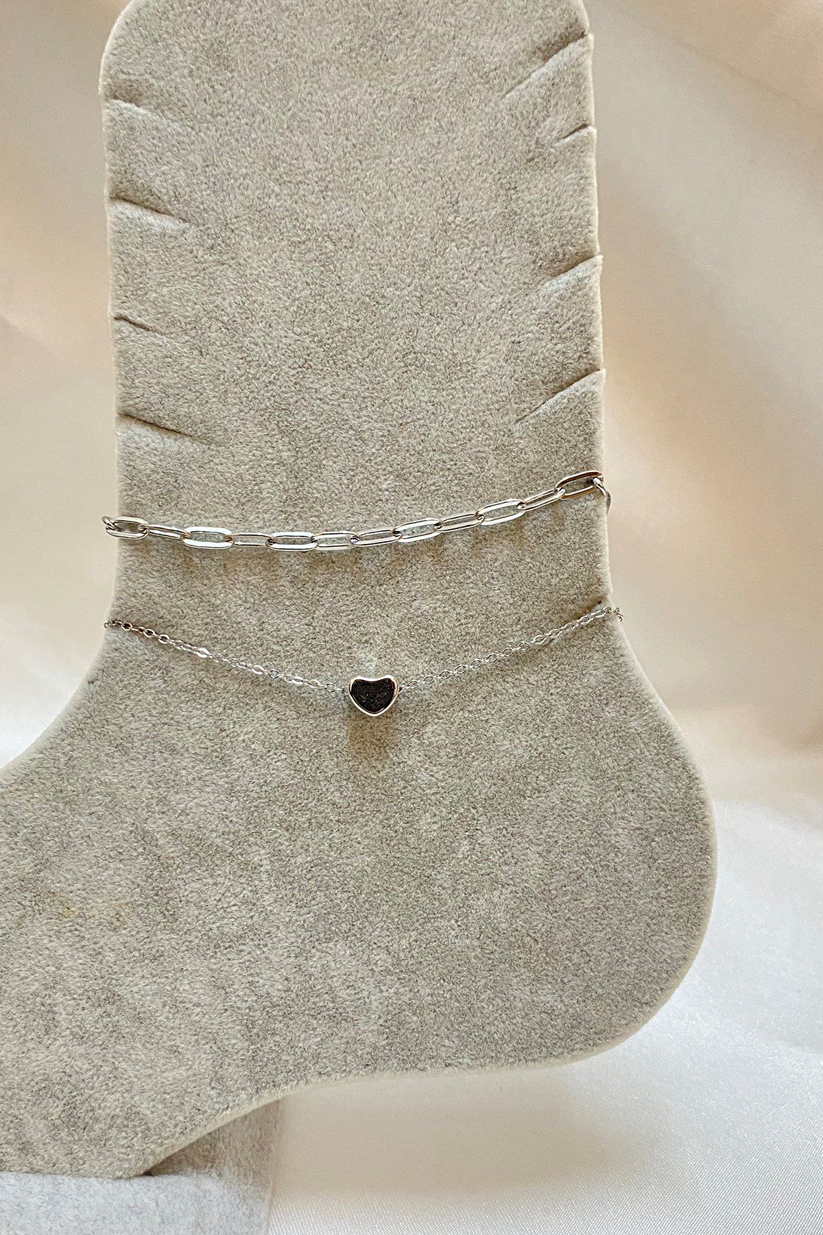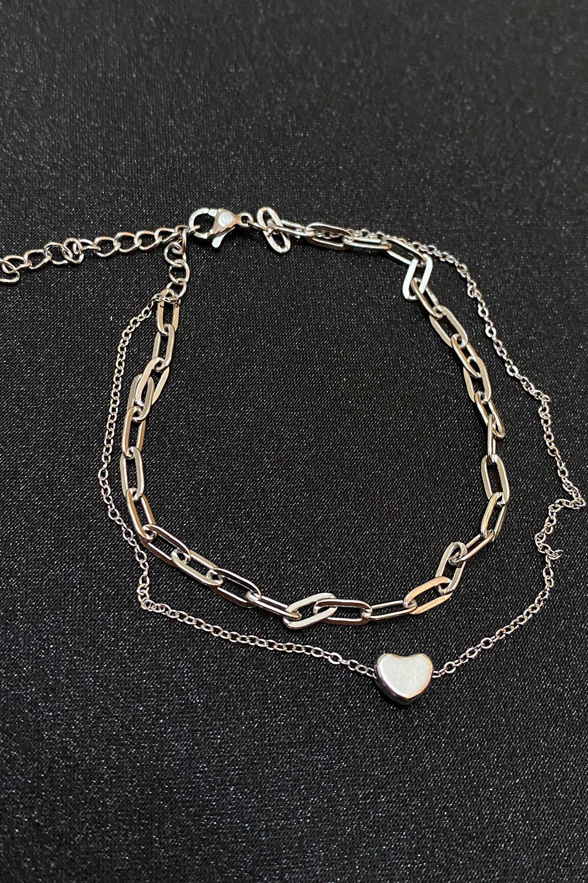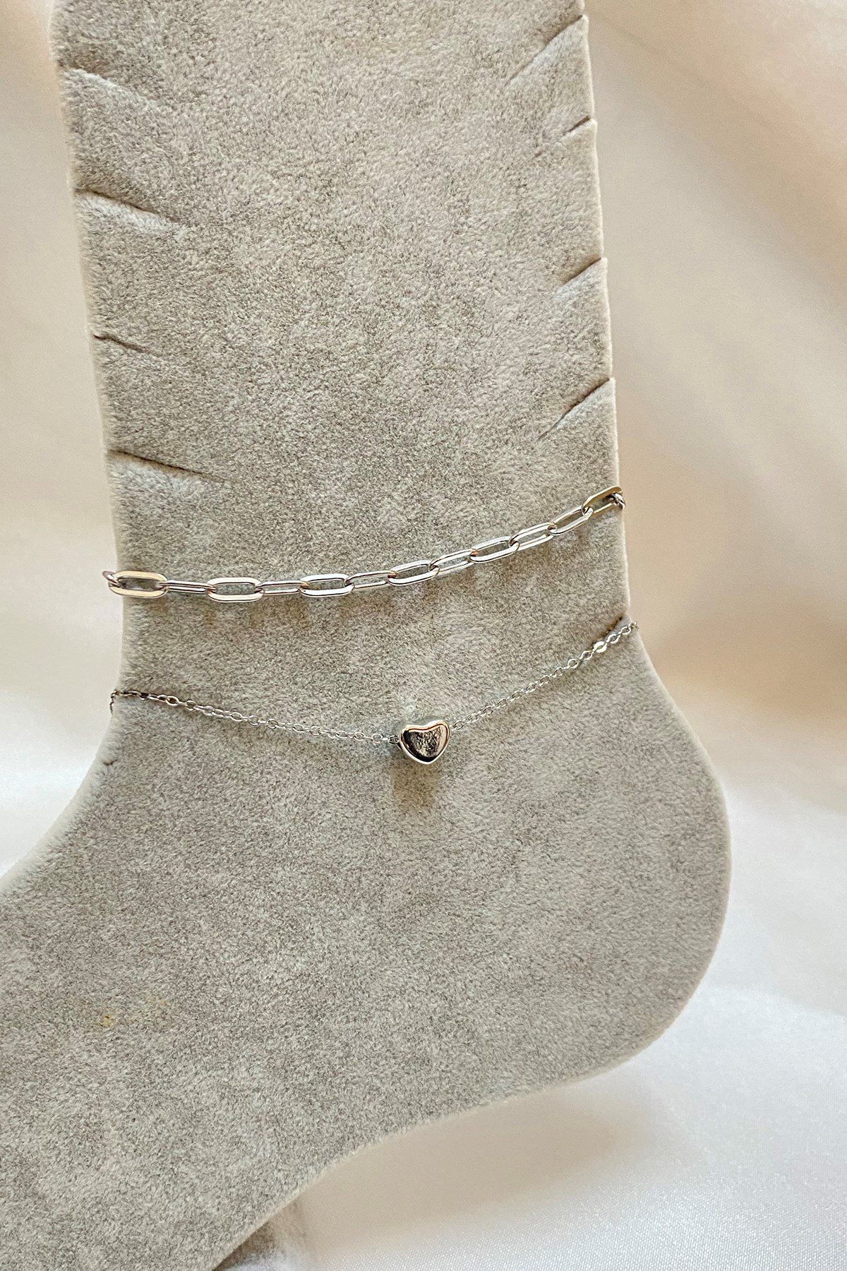 Toptan Gümüş Renk Kalp Model Esme Ve Sf Zincir Çelik Halhal – 3303