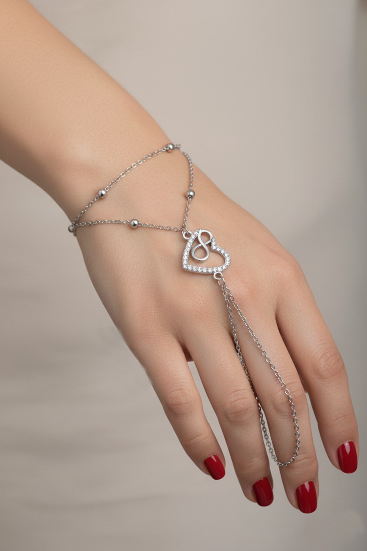 Toptan Gümüş Renk Kalp Sonsuzluk Çelik Şahmeran – 3512