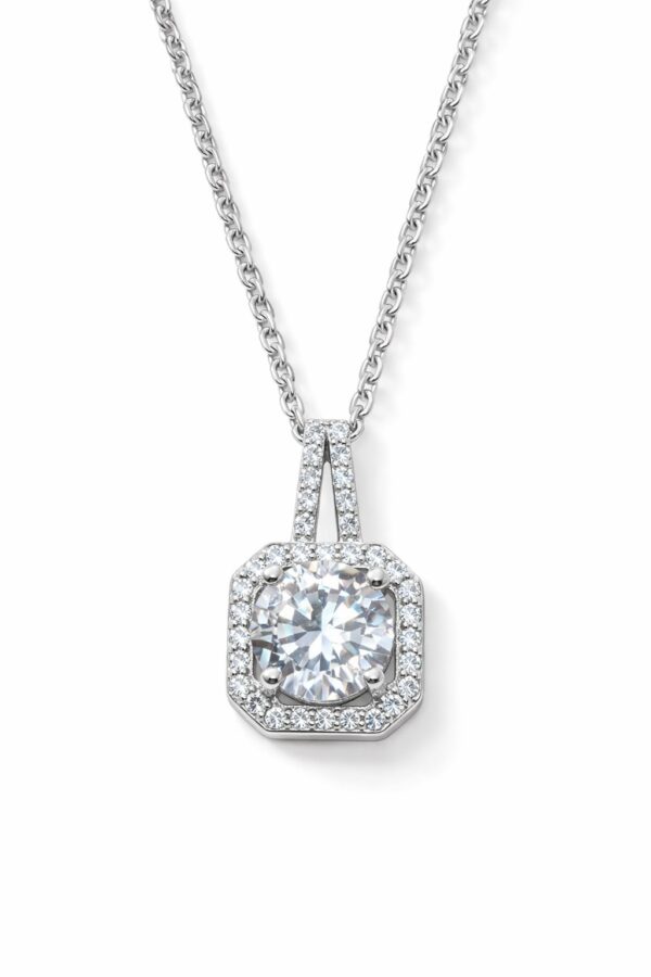 Toptan Gümüş Renk Kare Beyaz Taş Sf Zincir Çelik Kolye – 3863