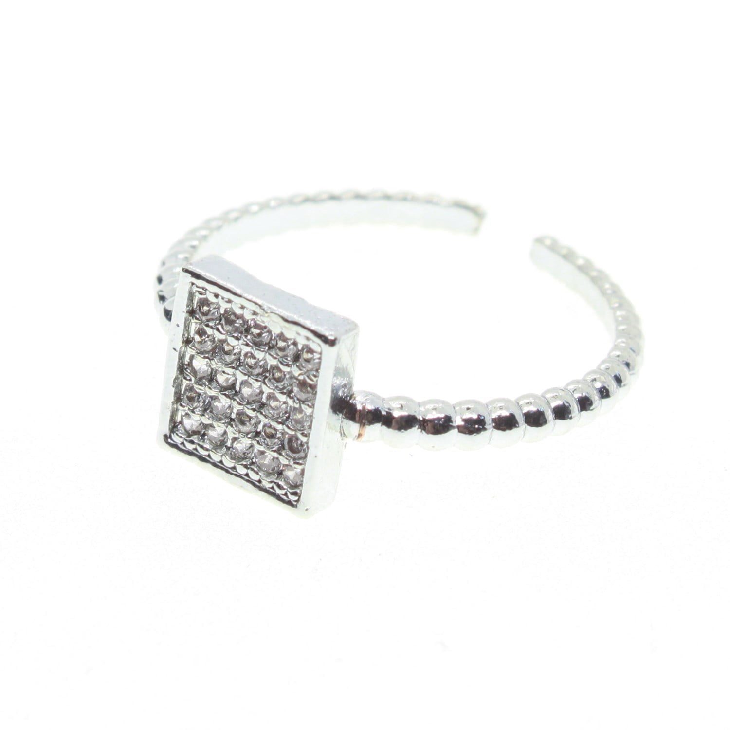 Toptan Gümüş Renk Kare Motif Zirkon Yüzük Ayarlabilir Her Parmağa Olur – 1496