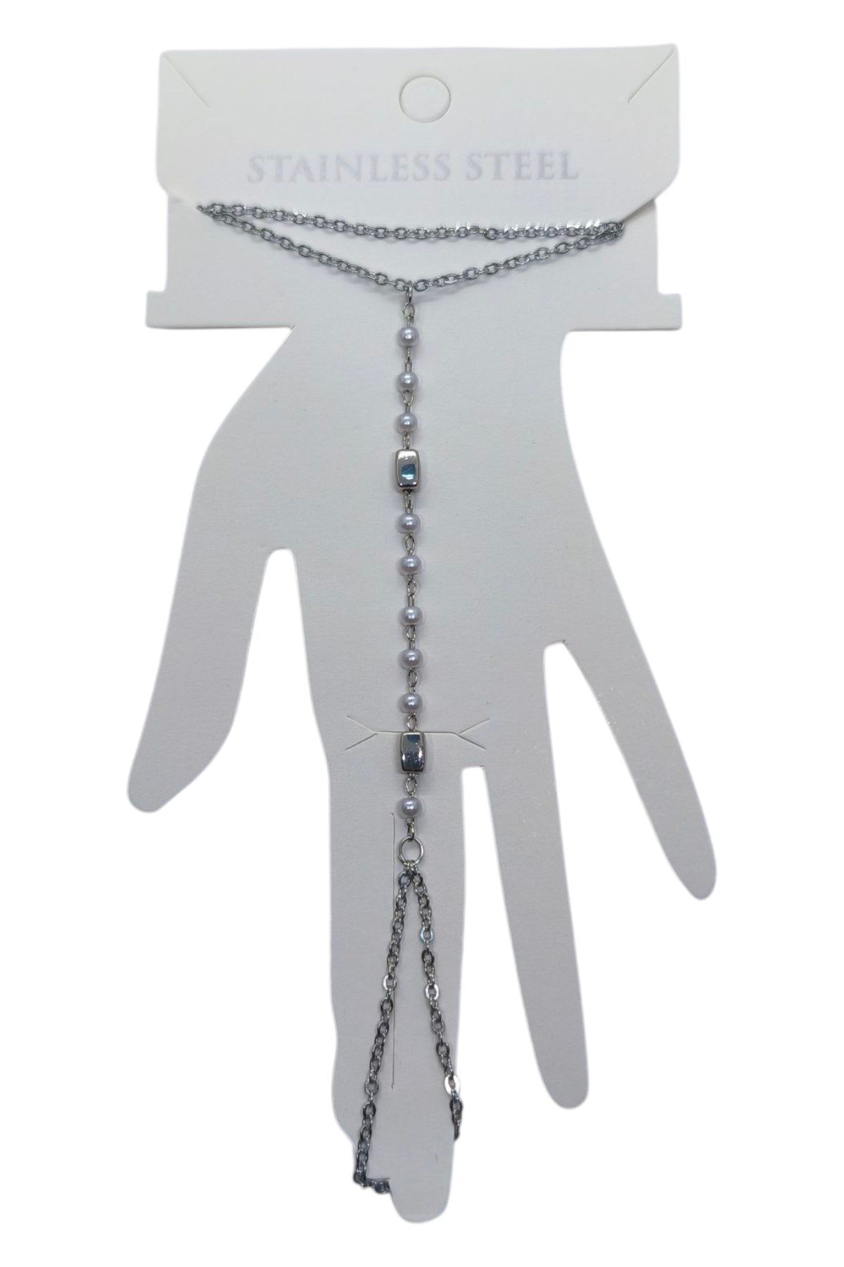 Toptan Gümüş Renk Kare Sıra İnci Çelik Şahmeran – 3551