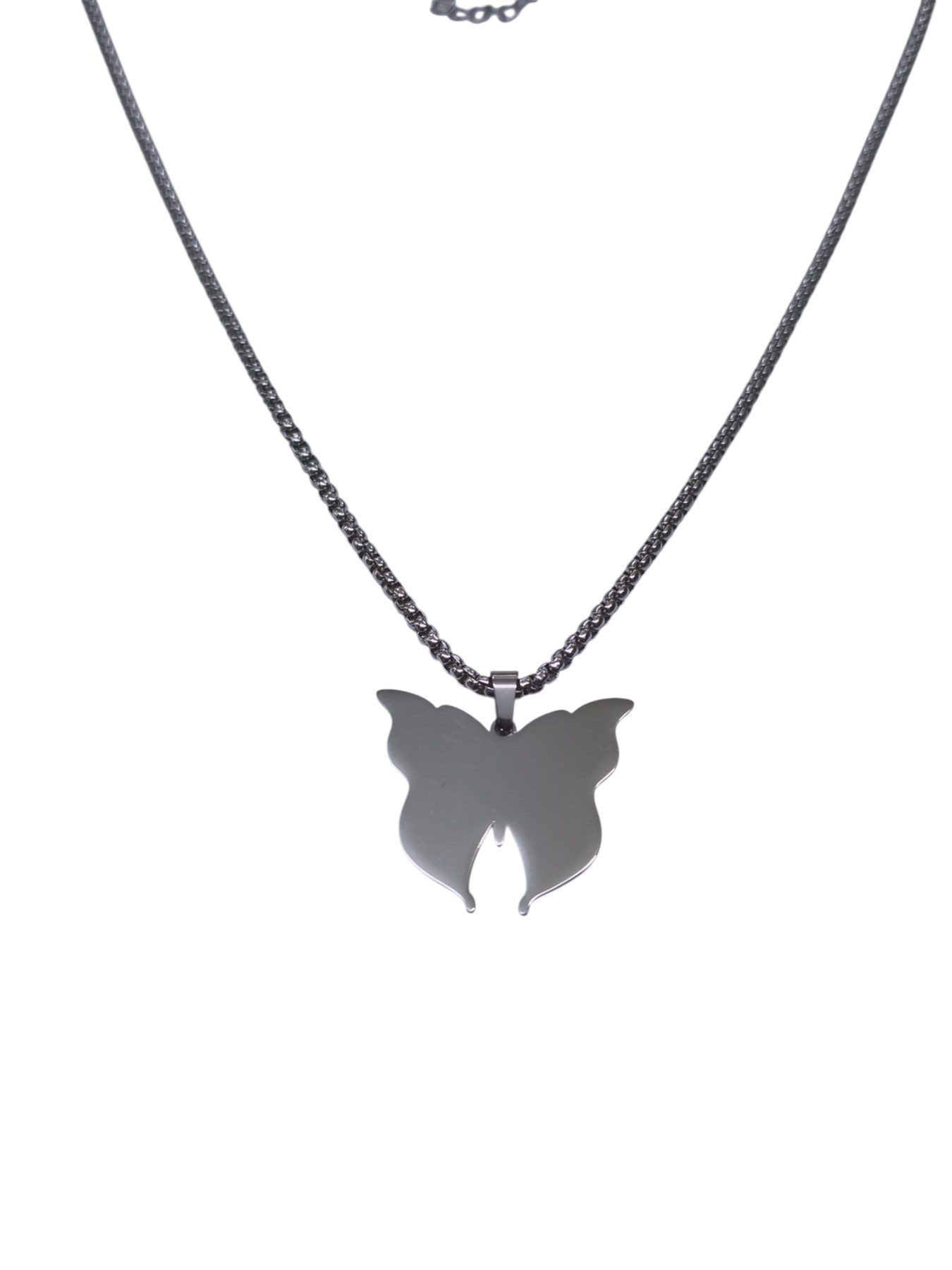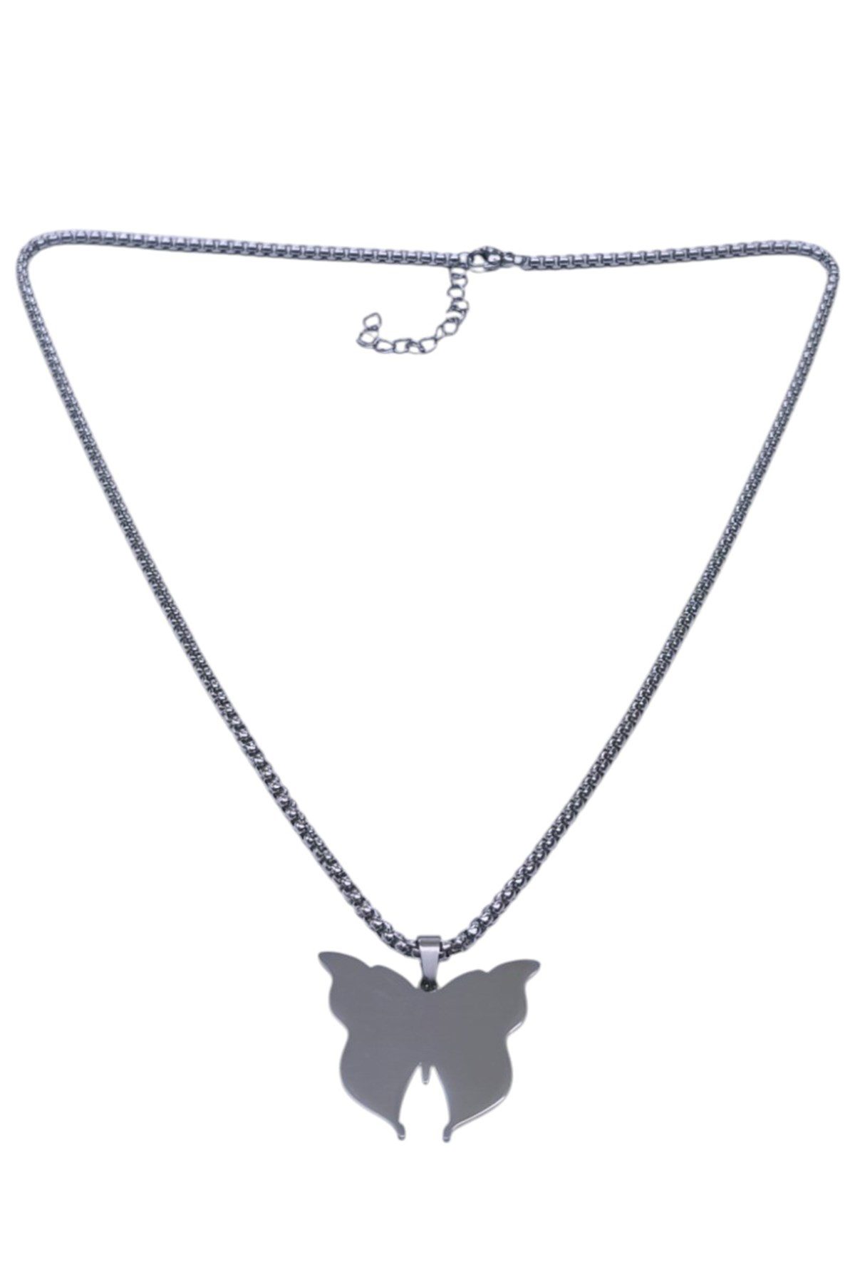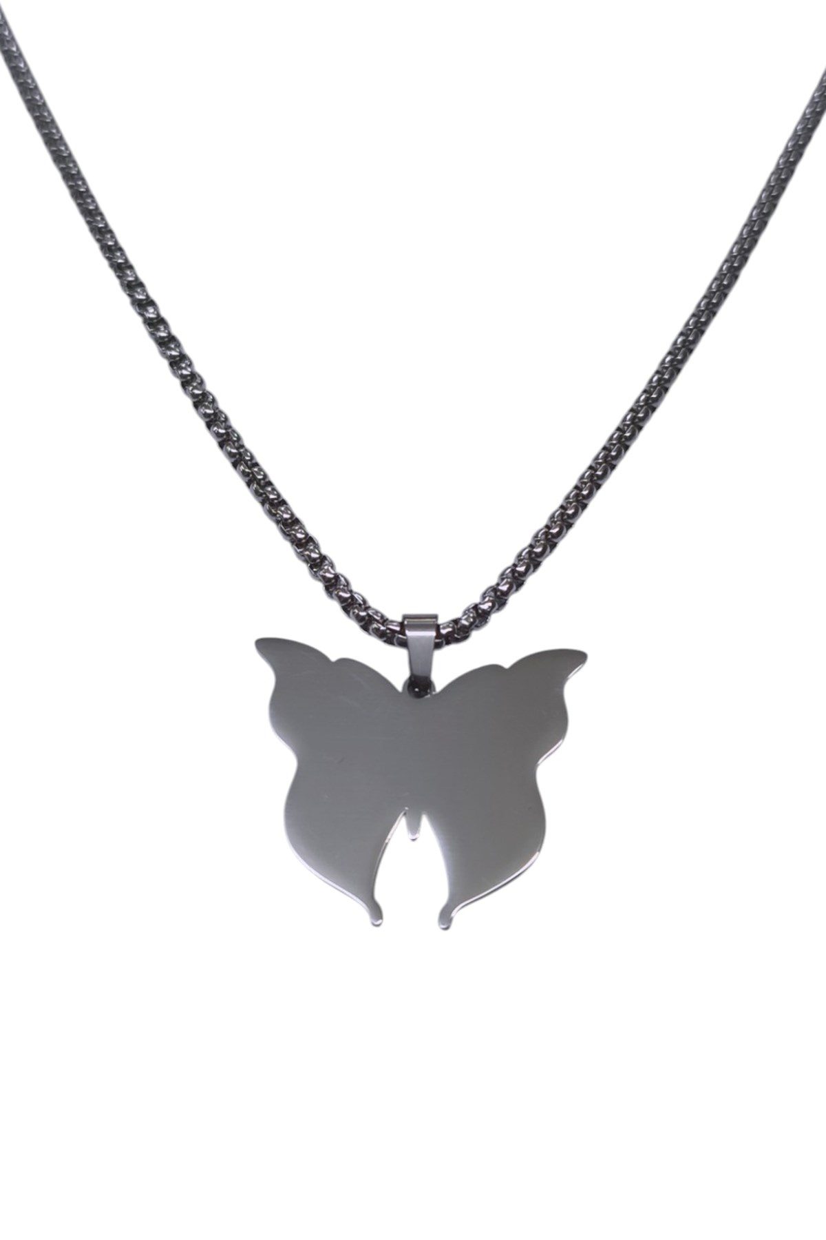 Toptan Gümüş Renk Kelebek Model Unisex Arnavut Zincir Çelik Kolye – 3310