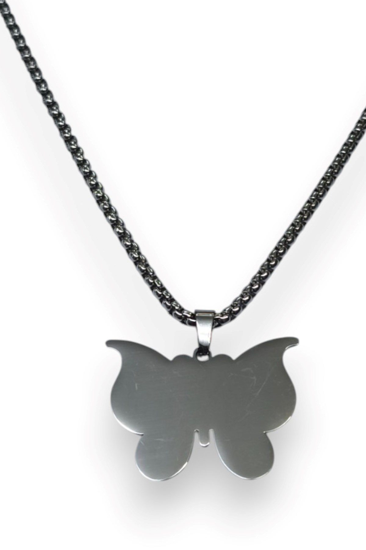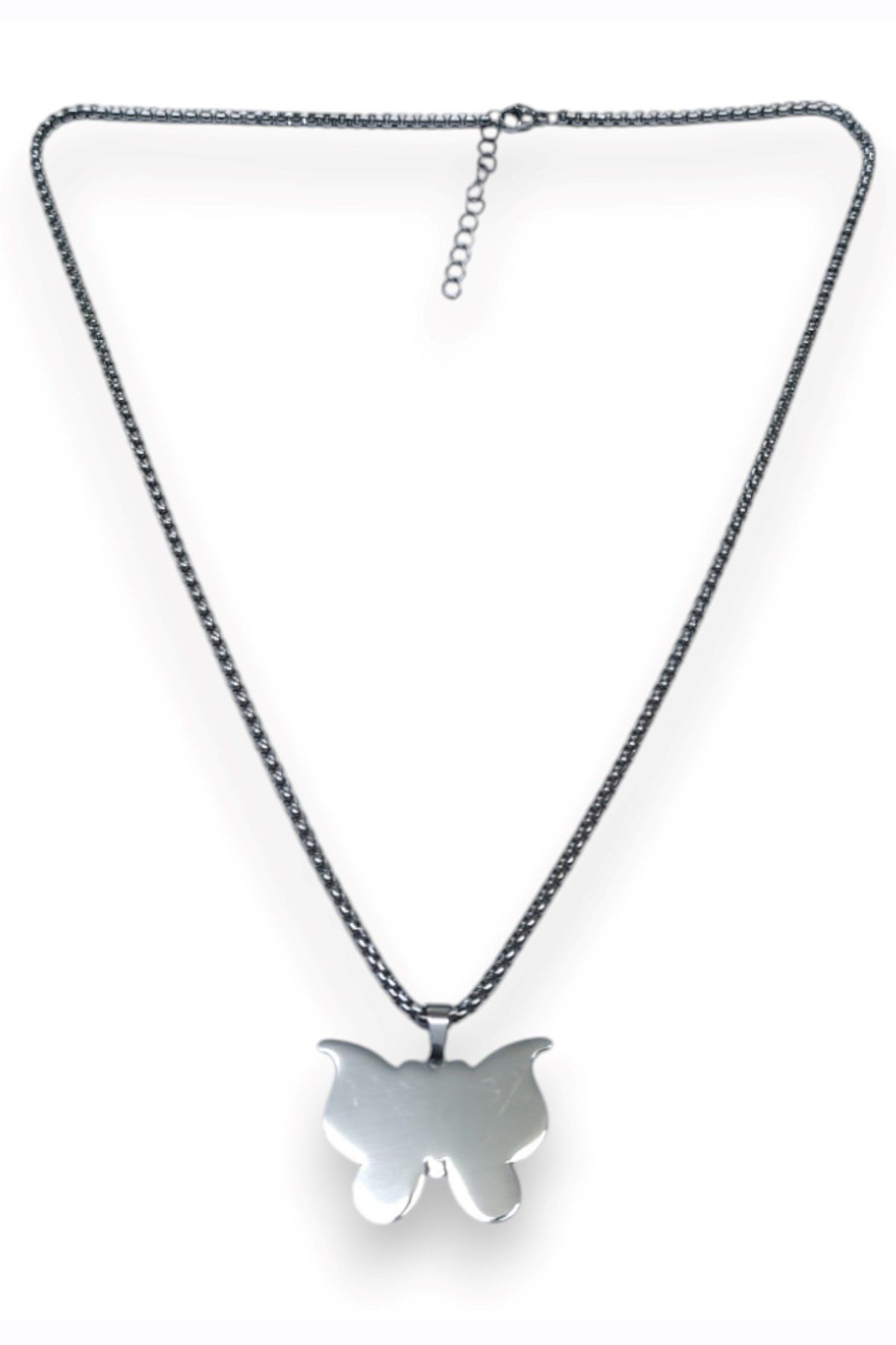Toptan Gümüş Renk Kelebek Model Unisex Arnavut Zincir Çelik Kolye – 3315