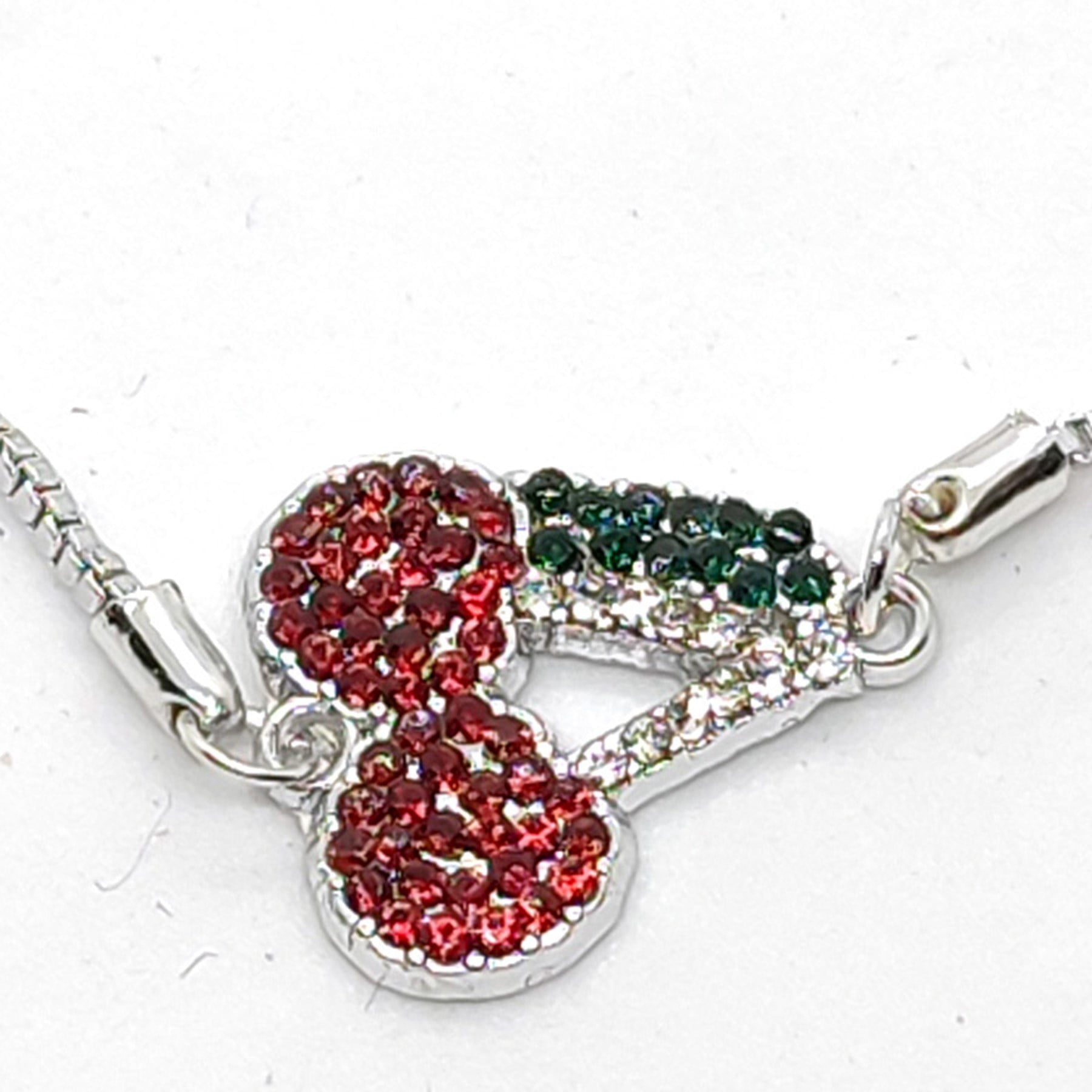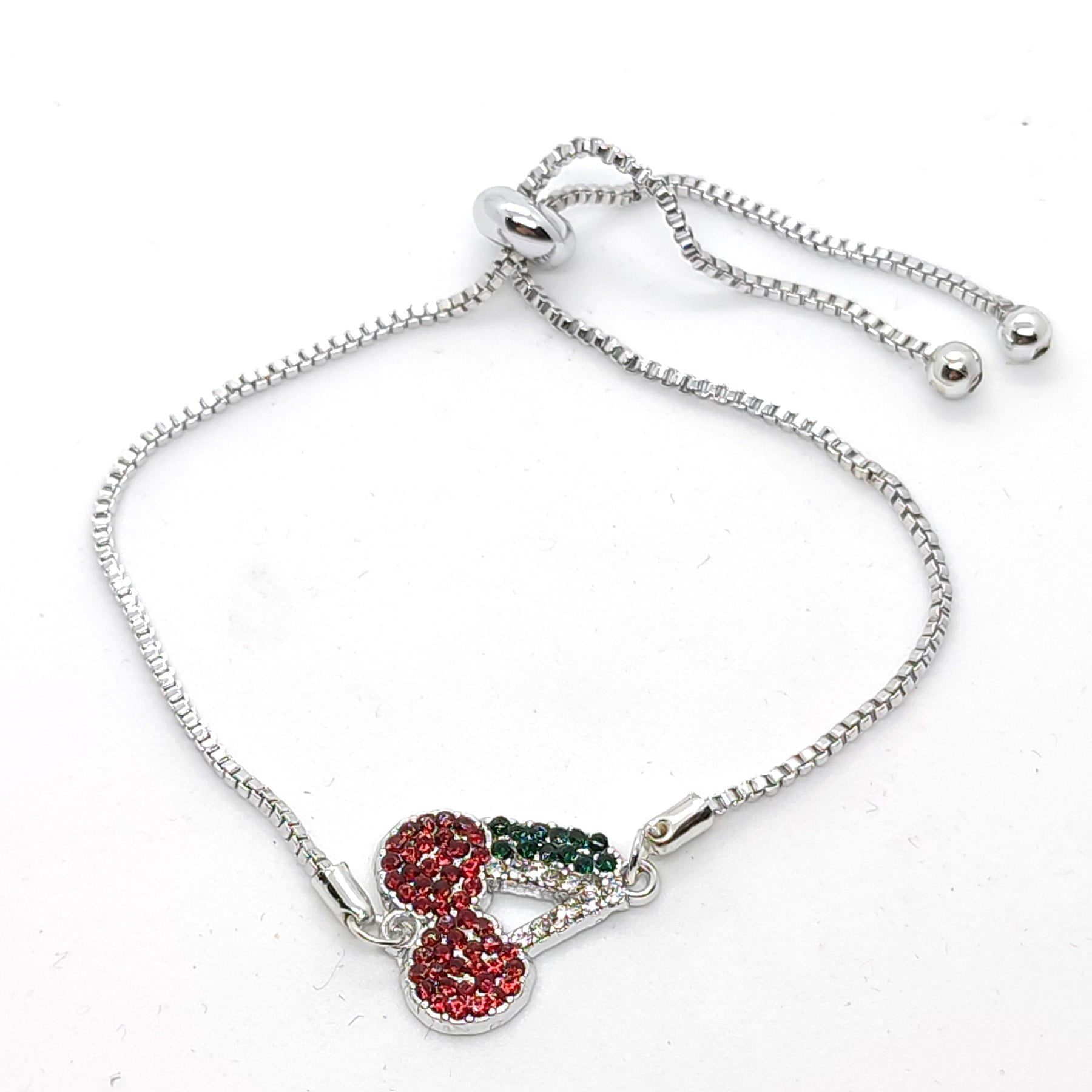 Toptan Gümüş Renk Kiraz Motifli Asansör Bileklik