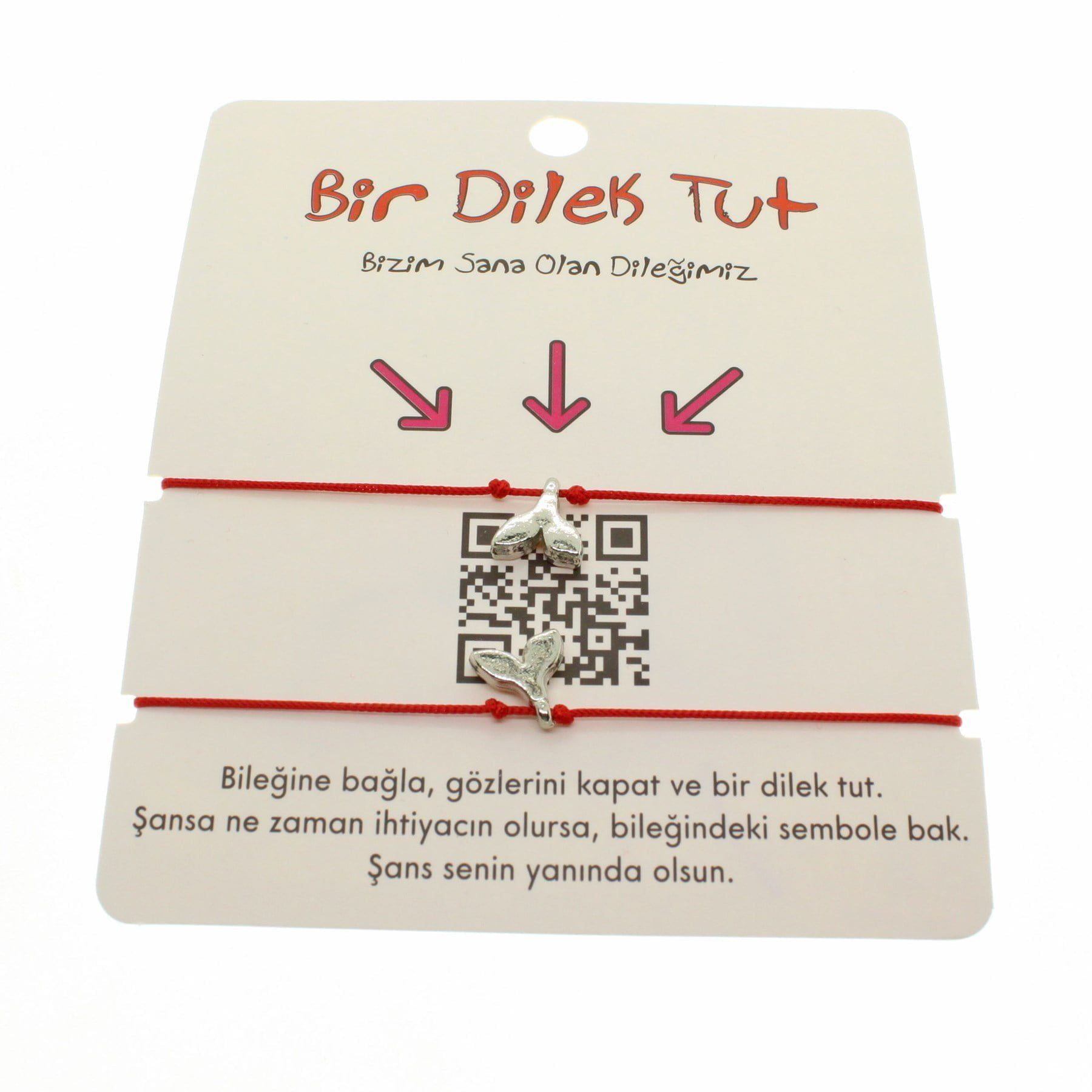 Toptan Gümüş Renk Kırmızı İp Kuyruk Arkadaş Bilekliği – 1856