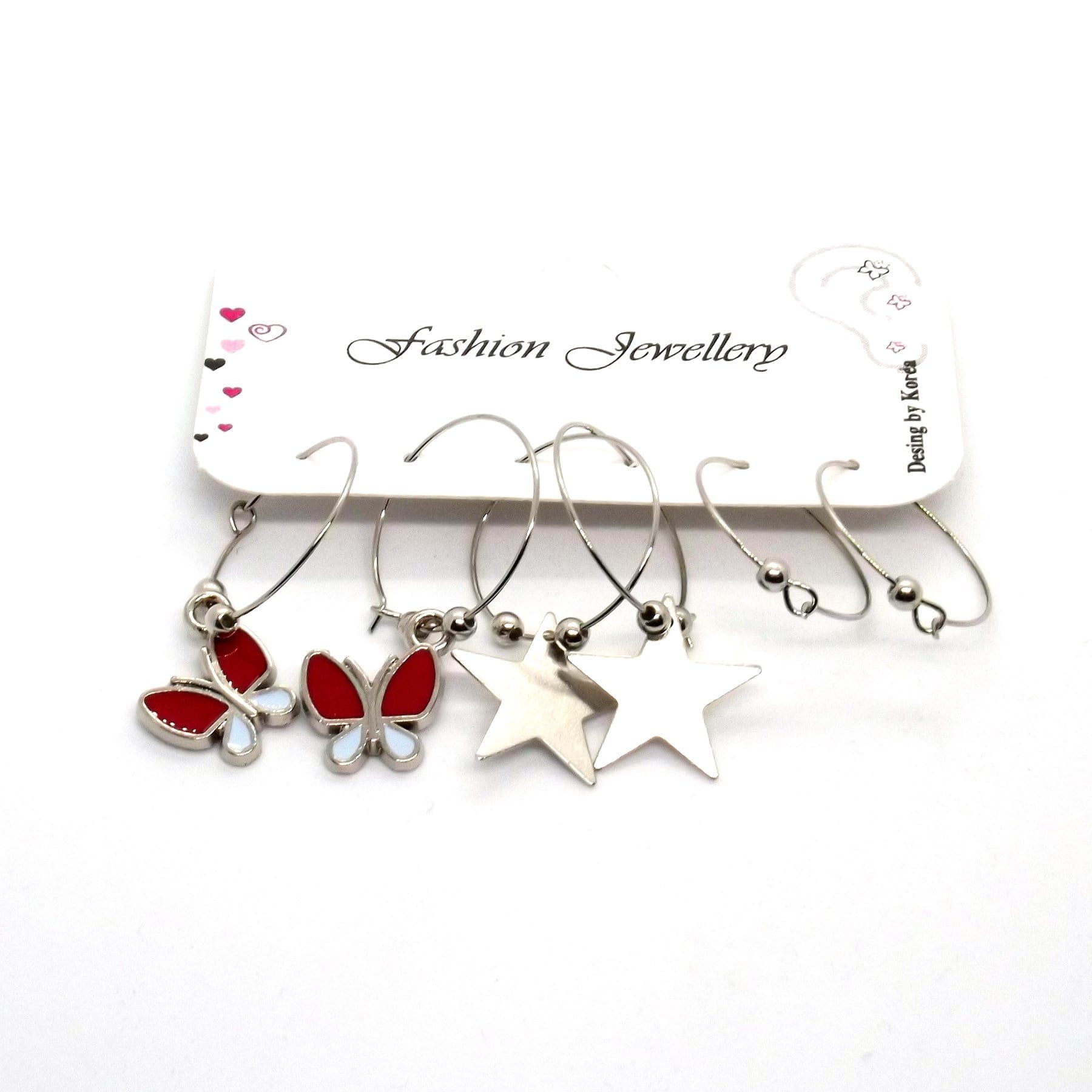 Toptan Gümüş Renk Kırmızı Mavi Mineli Kelebek Yıldız Figurlu Kombin Küpe 716