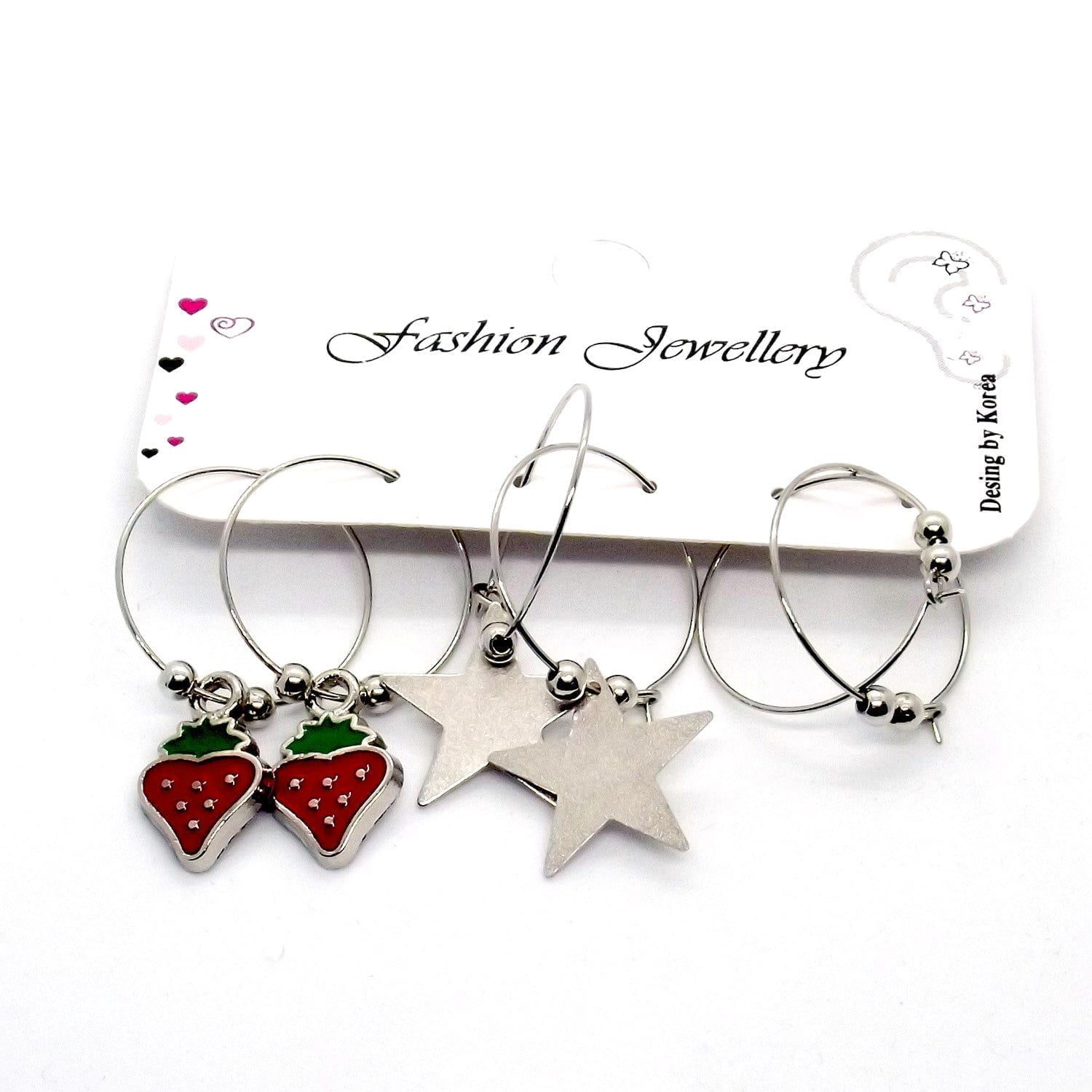 Toptan Gümüş Renk Kırmızı Mineli Çilek Yıldız Figurlu Kombin Küpe 721