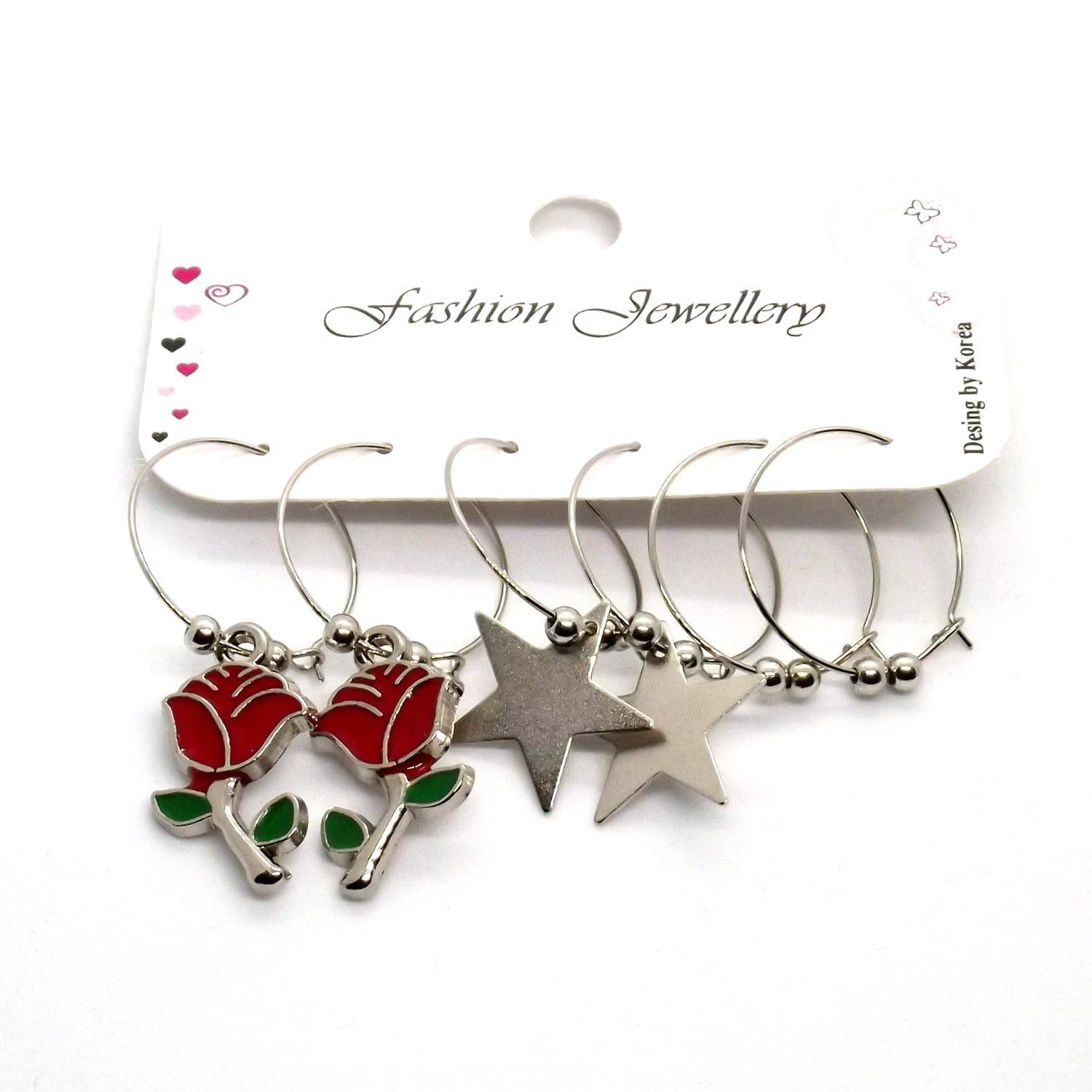 Toptan Gümüş Renk Kırmızı Mineli Gül Yıldız Figurlu Kombin Küpe 707