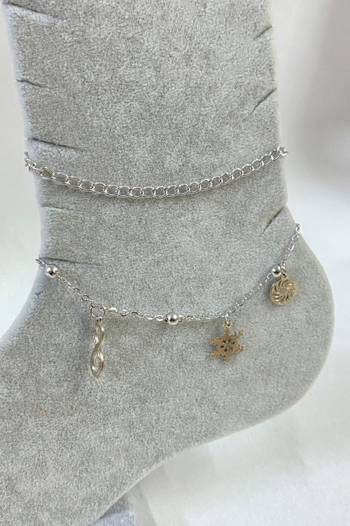 Toptan Gümüş Renk Kız Sonsuzluk Kartanesi Spirial Model Uzatma Ve Top Zincir Çelik Halhal – 3259