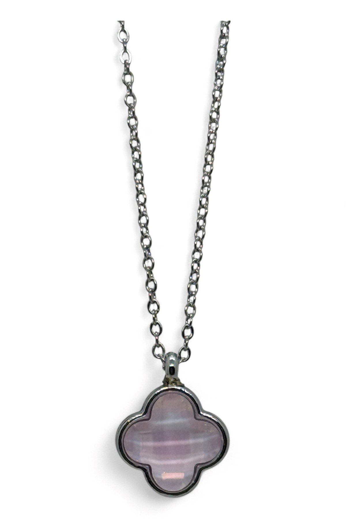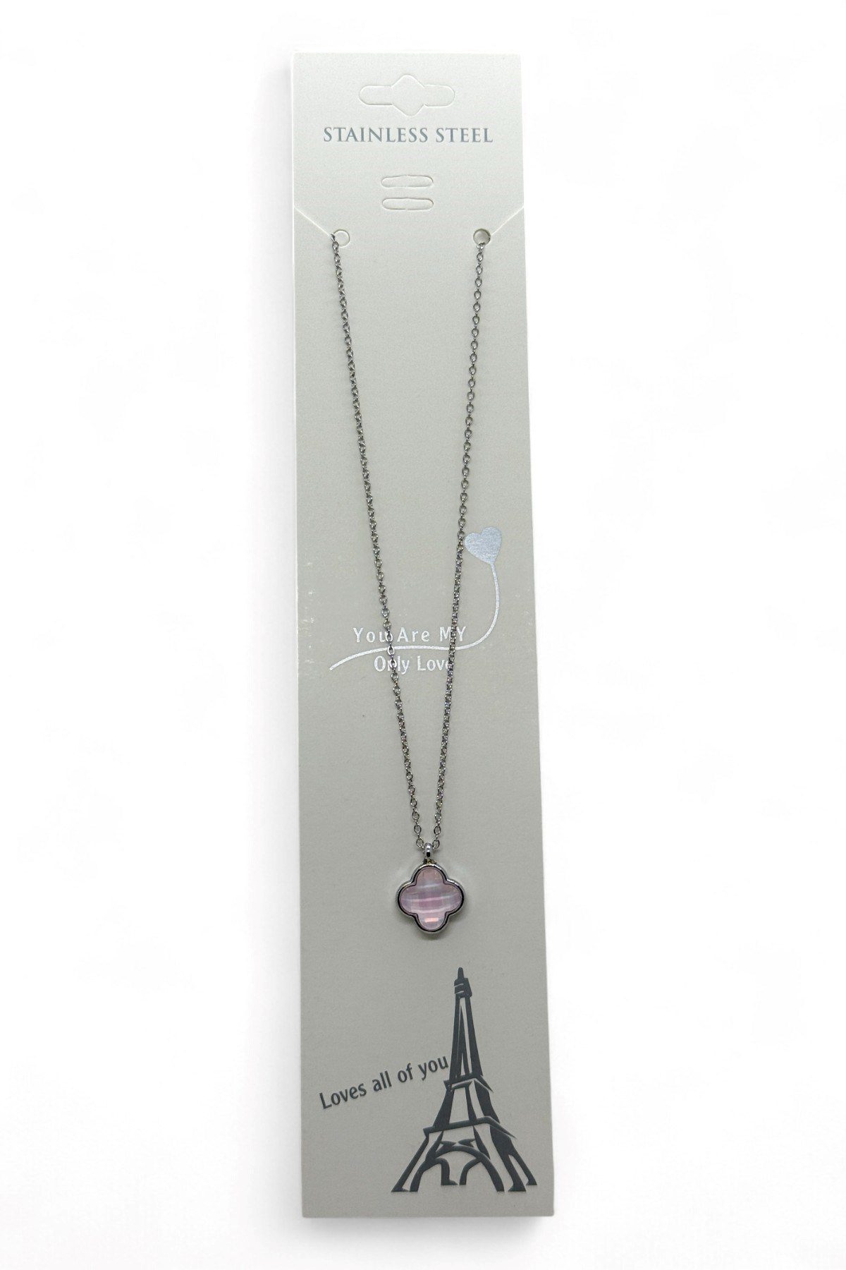 Toptan Gümüş Renk Krem Taş Beş Yapraklı Stilize Çiçek Model Top Zincir Çelik Kolye – 3790