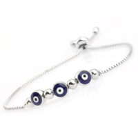 Toptan Gümüş Renk Mavi Göz Üçlü Macun Asansör Bileklik – 1115