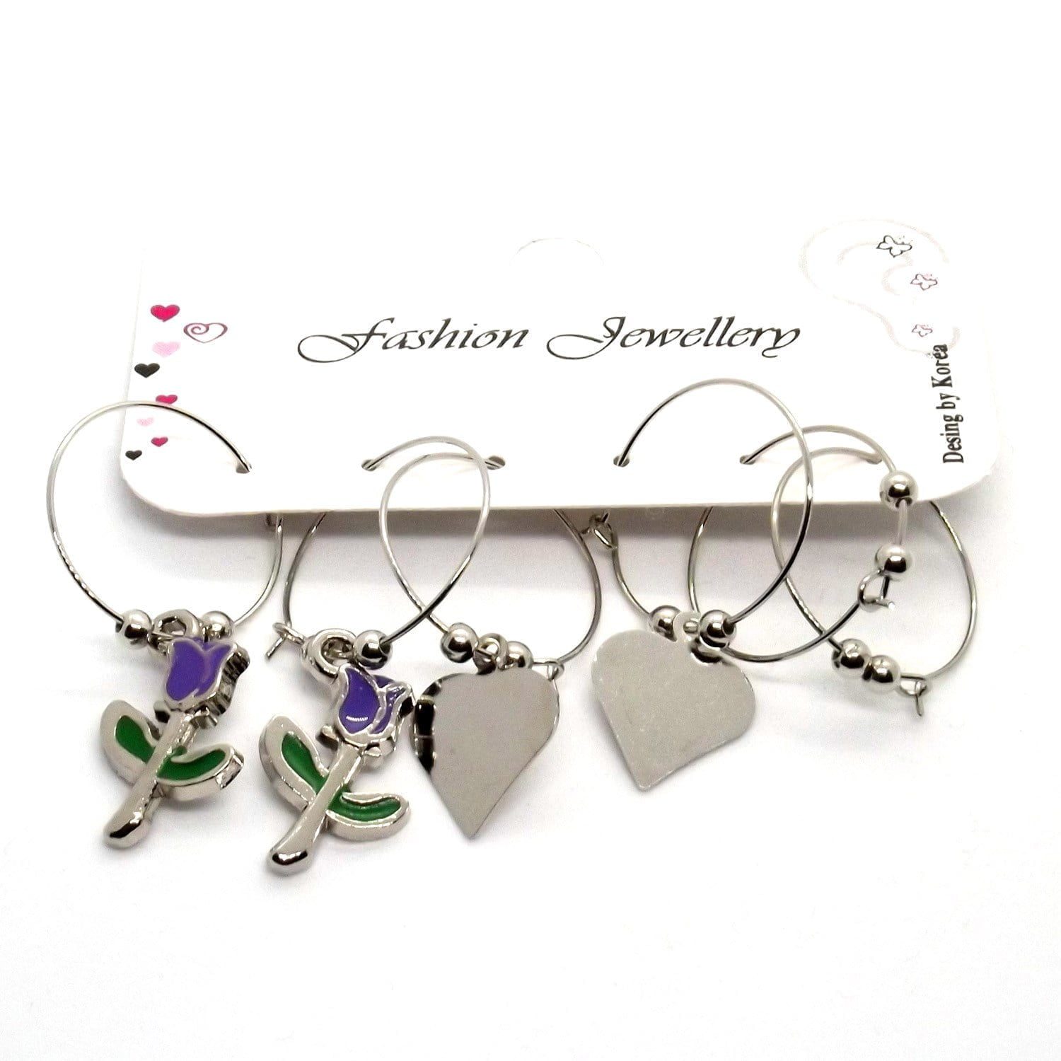 Toptan Gümüş Renk Mor Mineli Çiçek Kalp Figurlu Kombin Küpe 710