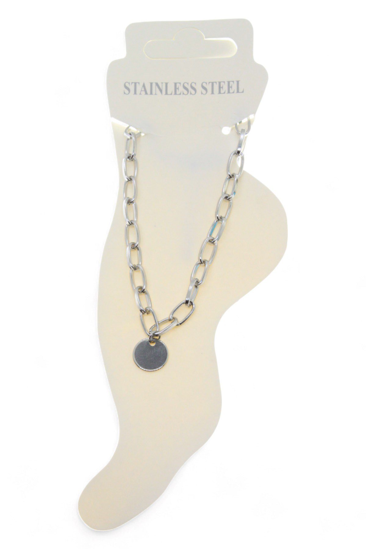 Toptan Gümüş Renk Oval Dikdörtgen Pul Çelik Halhal – 3440