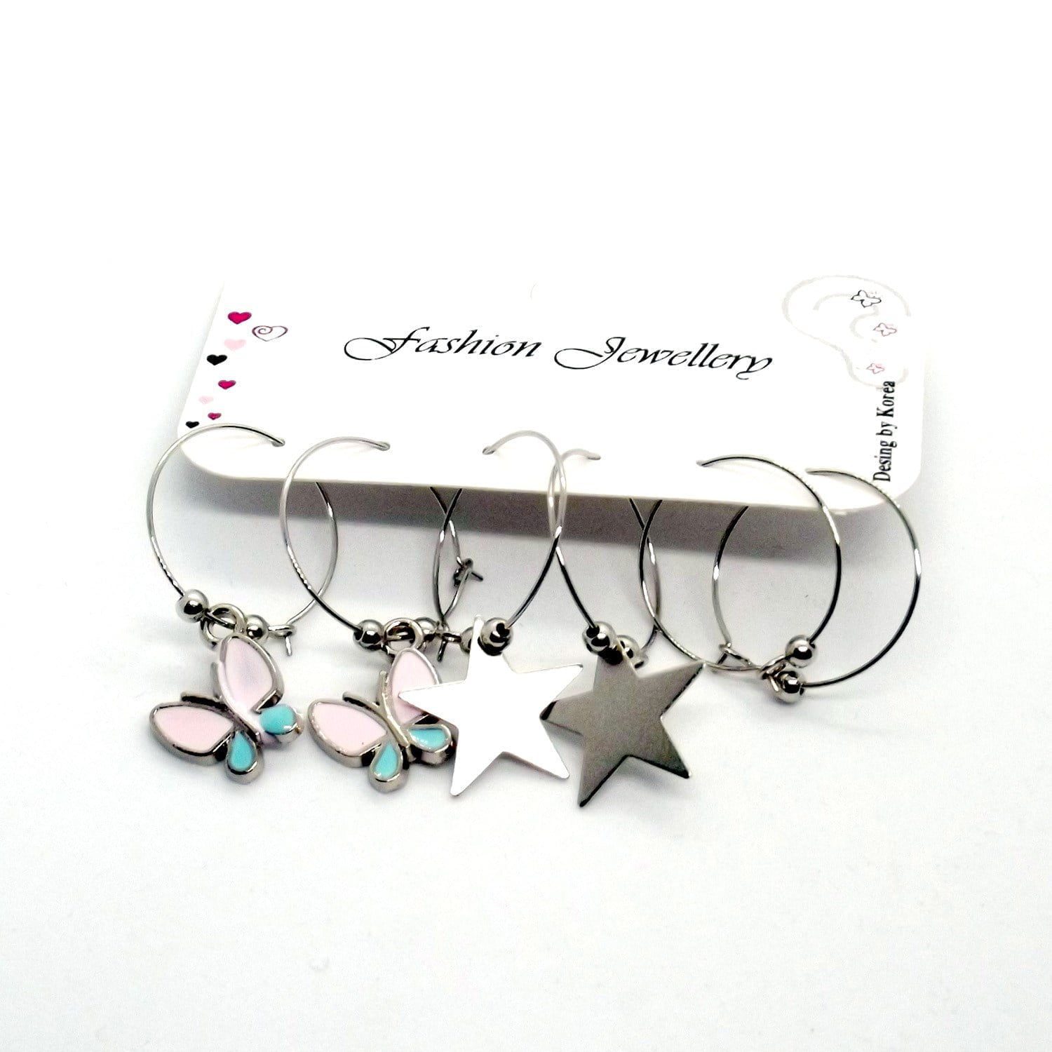 Toptan Gümüş Renk Pembe Mavi Mineli Kelebek Yıldız Figurlu Kombin Küpe 717
