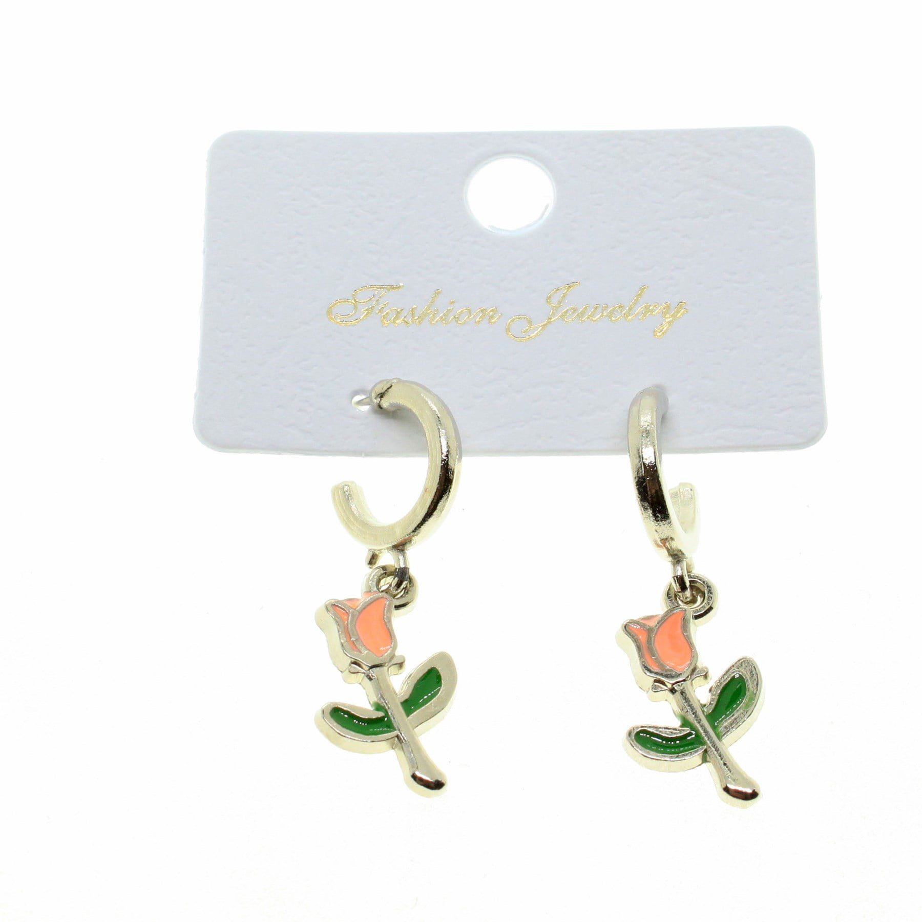 Toptan Gümüş Renk Pembe Yeşil Mineli Gül Küpe – 1978