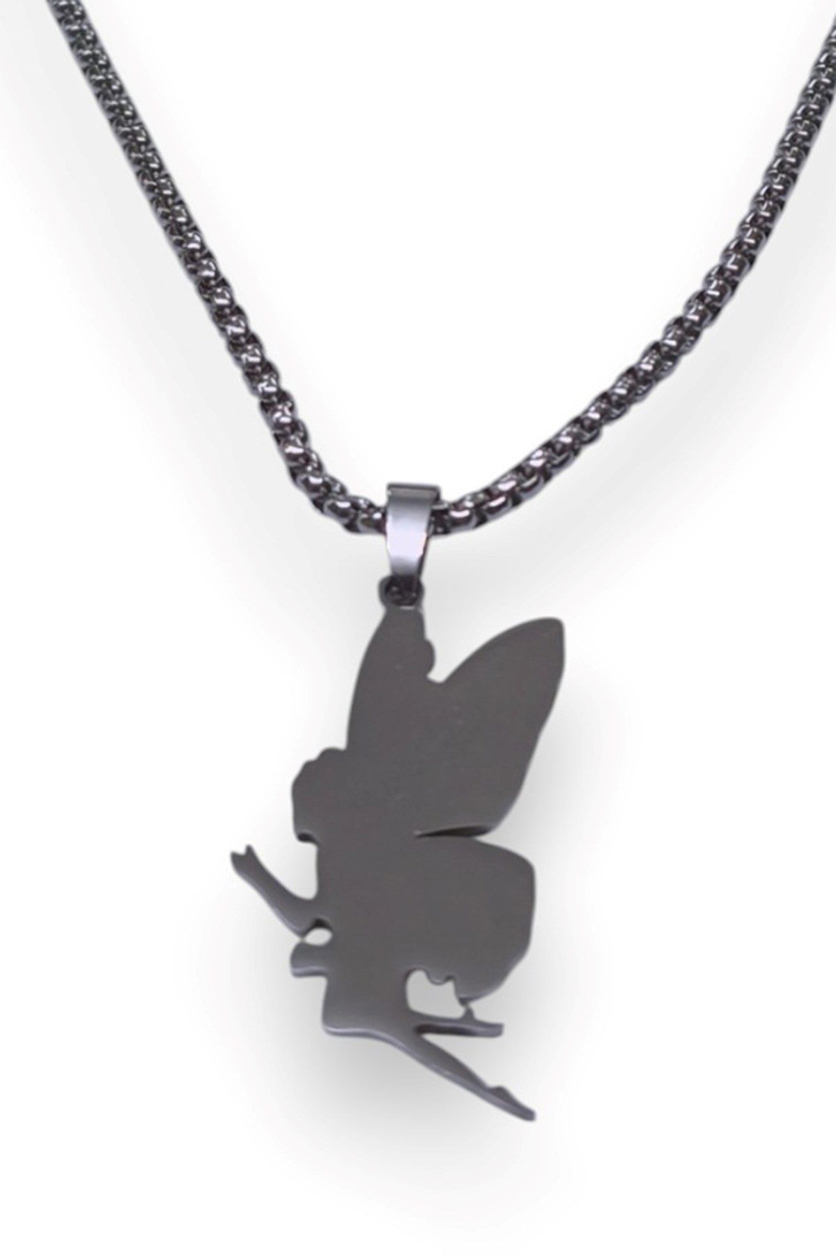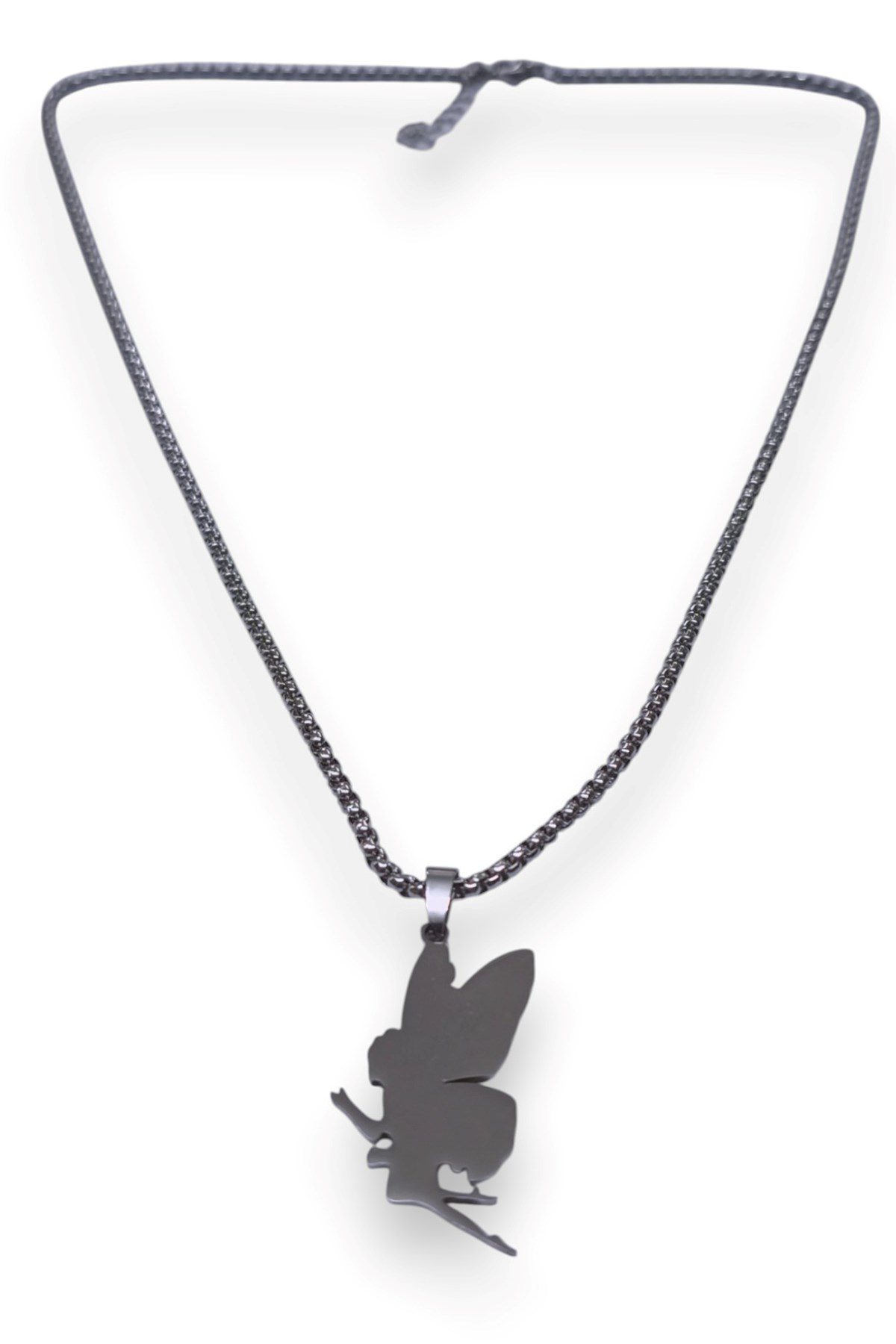Toptan Gümüş Renk Peri Model Unisex Arnavut Zincir Çelik Kolye – 3313