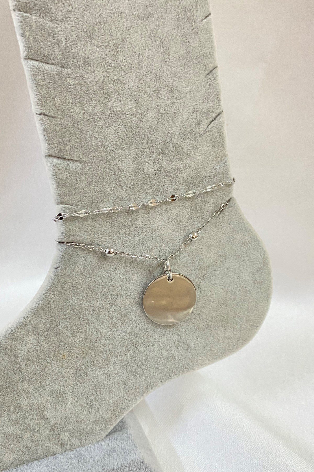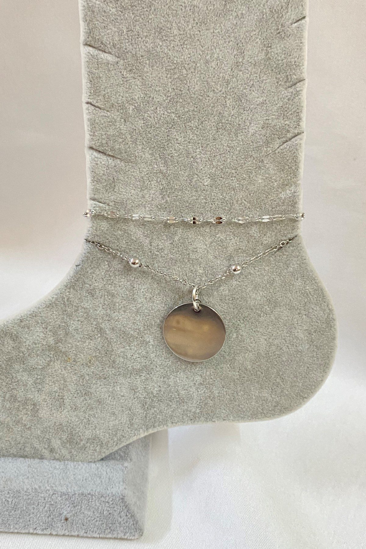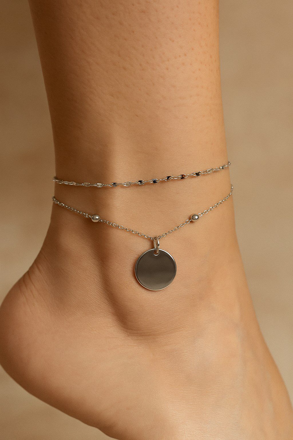 Toptan Gümüş Renk Pul Model Singapur Ve Top Zincir Çelik Halhal – 3268