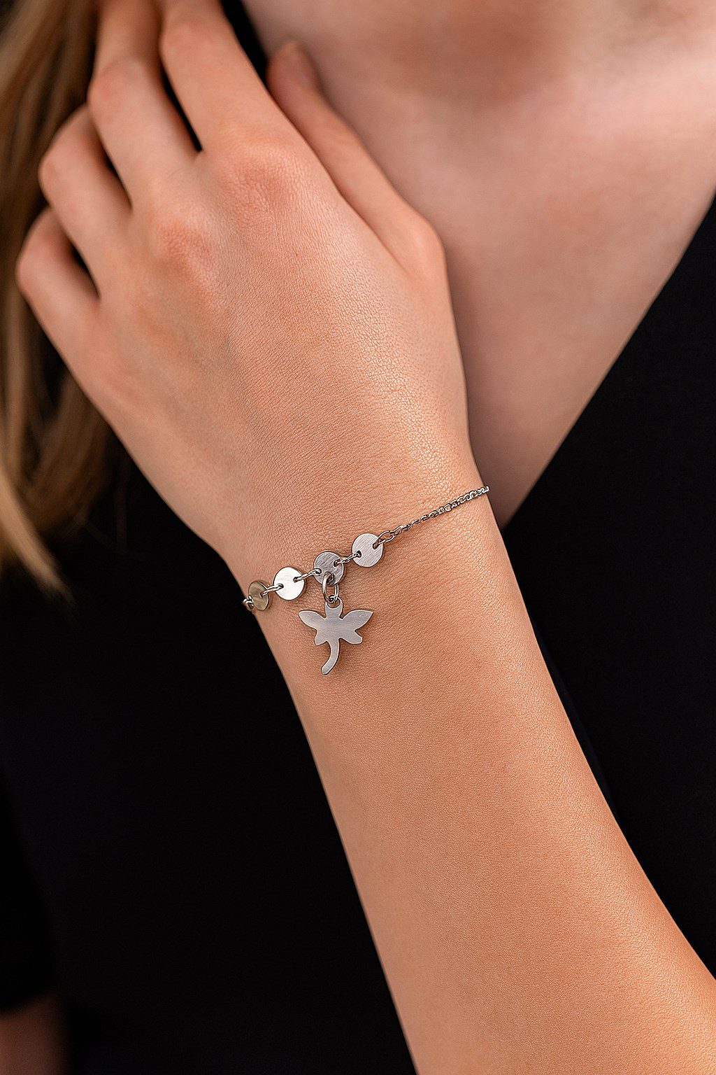 Toptan Gümüş Renk Pul Zincir Yusufcuk Asansör Çelik Bileklik – 3616